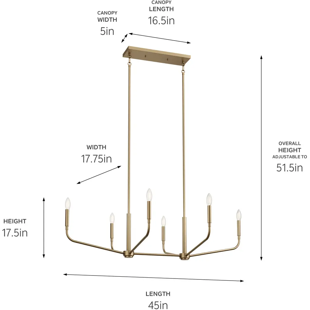 Madden 45 Inch 6 Light Linear Chandelier in Champagne Bronze