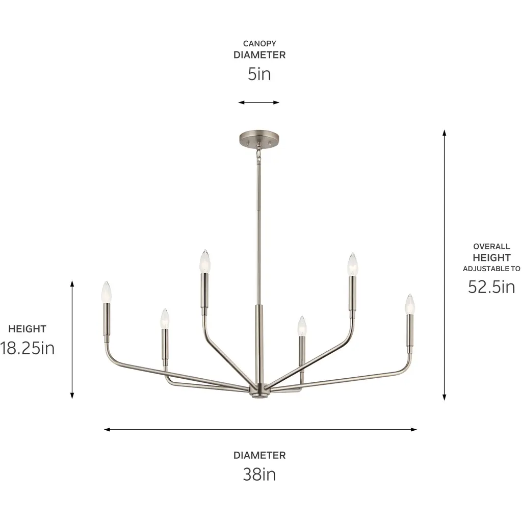 Madden 38 Inch 6 Light Chandelier in Brushed Nickel