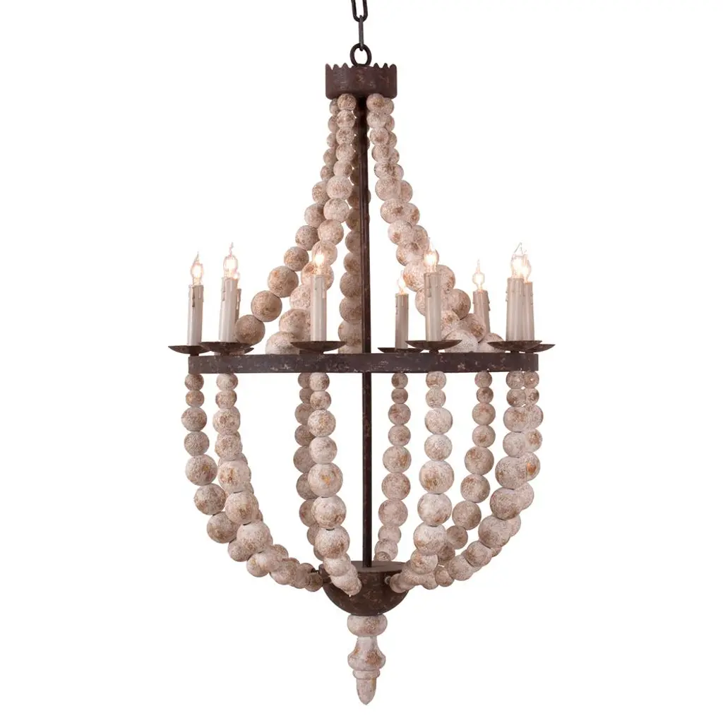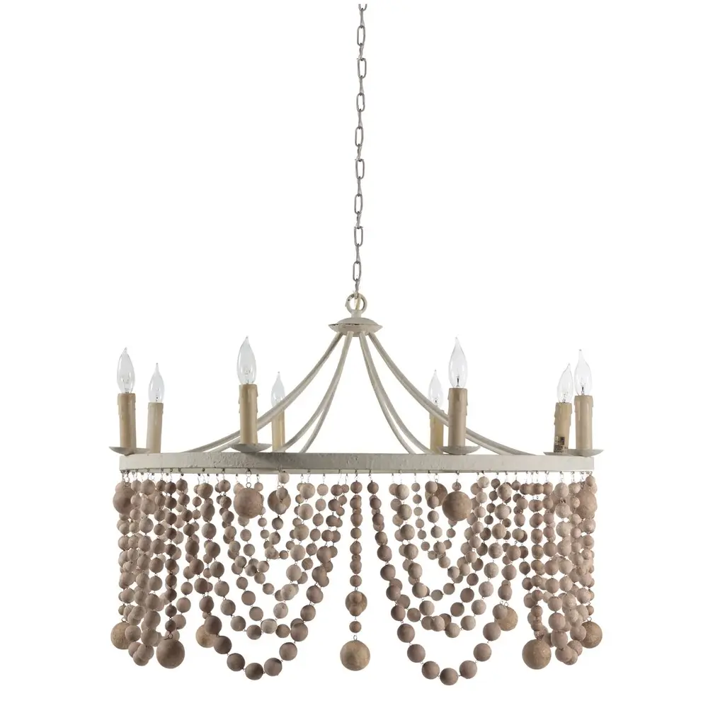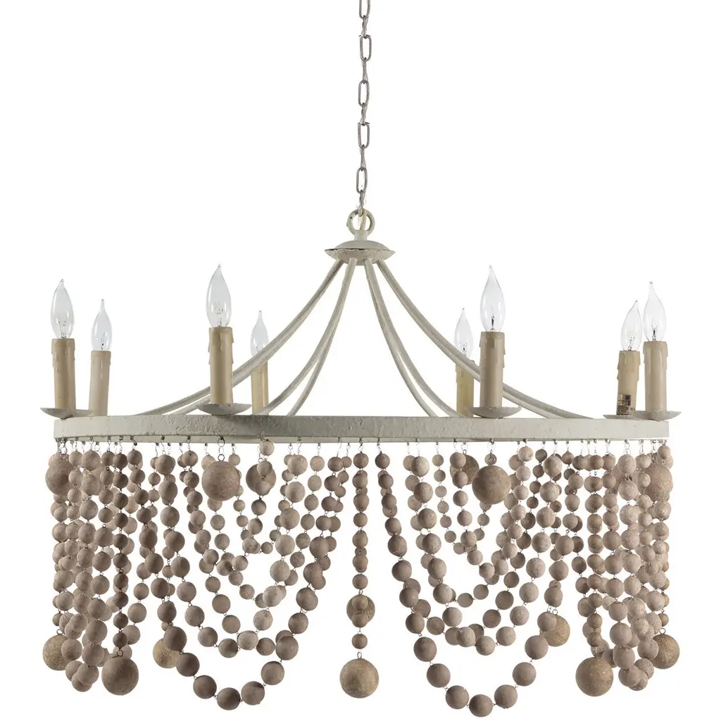 Madeleine Beaded Chandelier, Beige Washed Wood