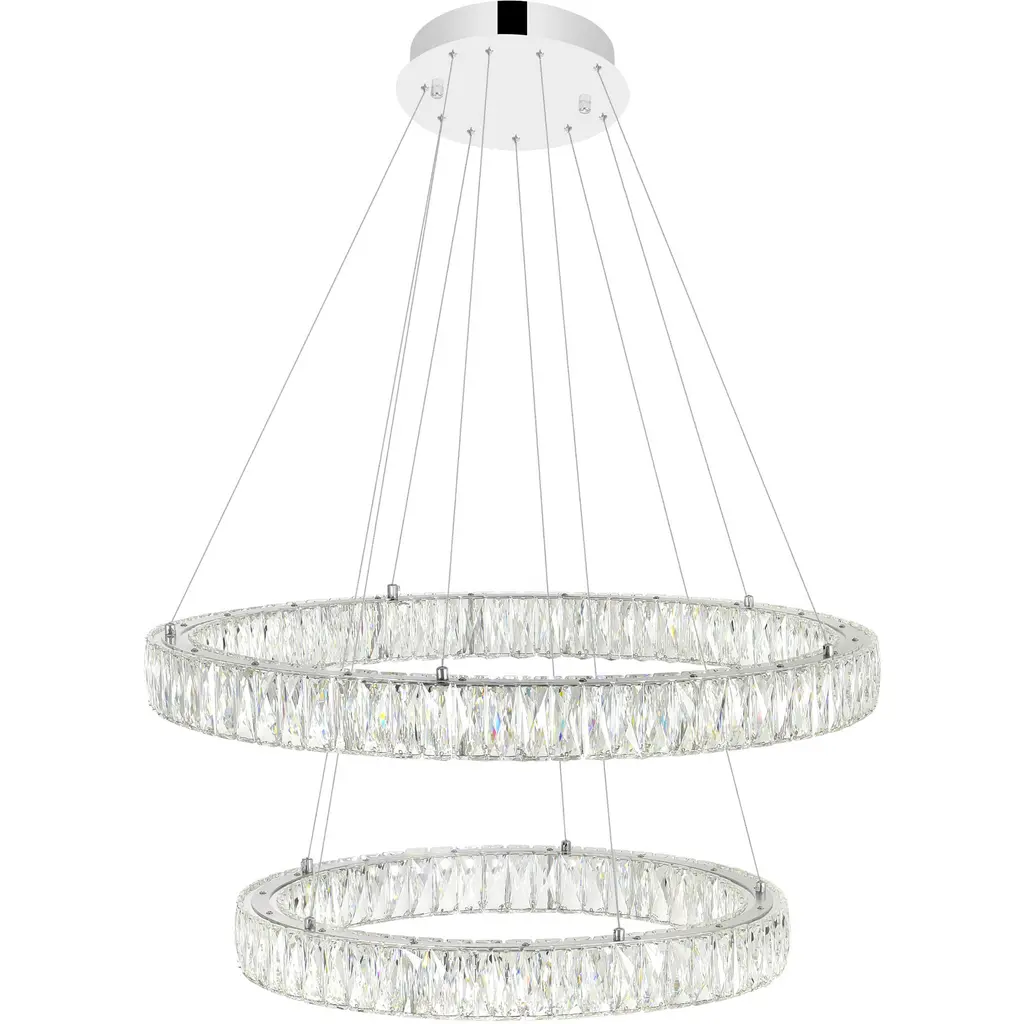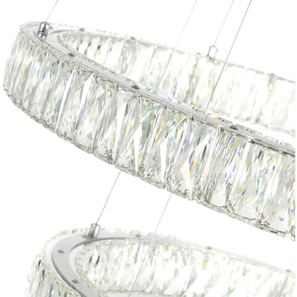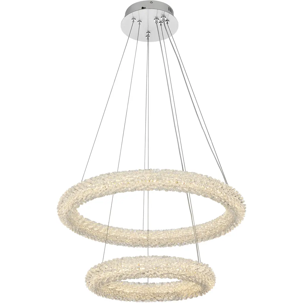 Transform your living space with the Madeline 2-Ring LED Chandeliera perfect mix of modern style and classic elegance. Its two sleek, glowing rings hang from adjustable cords, letting you customize the height for the ideal look. The polished chrome canopy adds a refined touch, making it a great fit for high ceilings and open floor plans. Whether you're entertaining or relaxing, this chandelier brings a luxurious glow to any room. With dimmable lighting, you can set just the right mood. A stunning centerpiece for any home that loves a touch of sophistication.