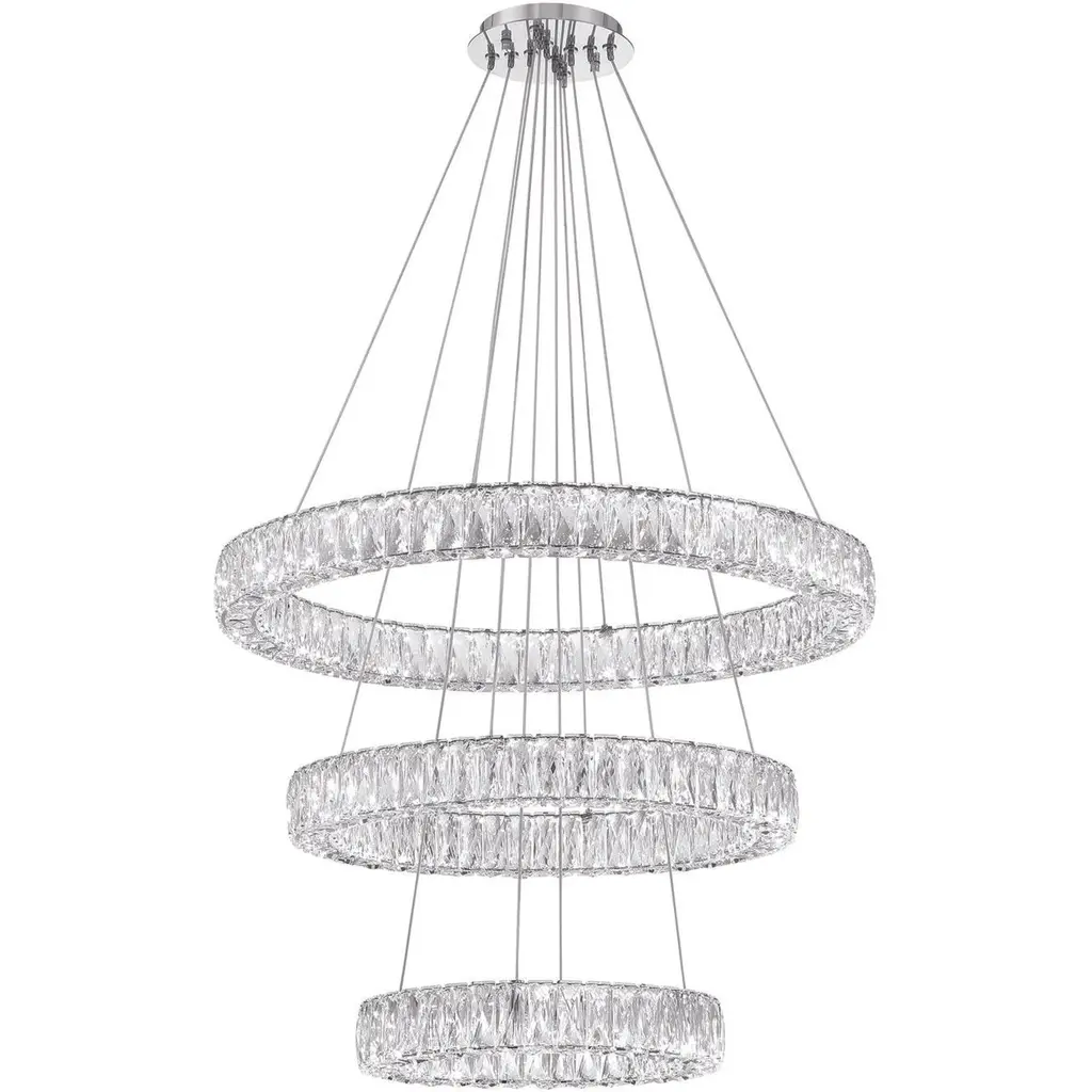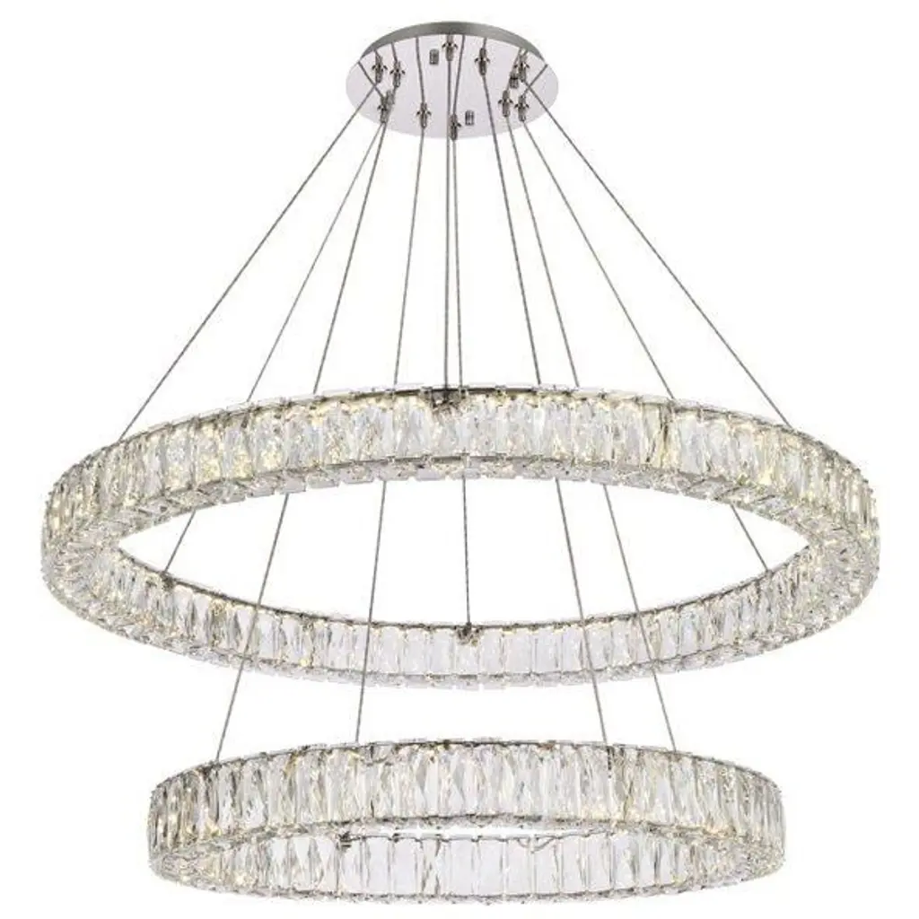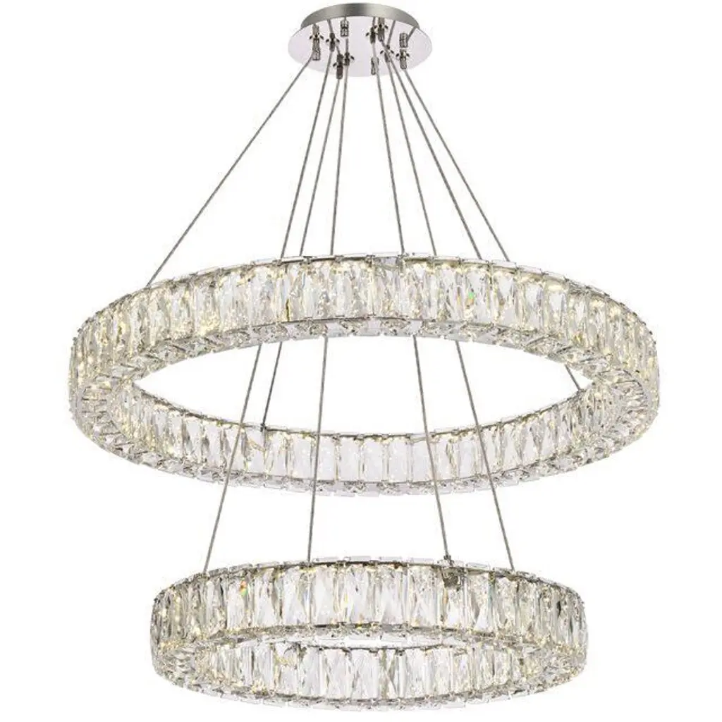 Transform your living space with the Madeline 2-Ring LED Chandeliera perfect mix of modern style and classic elegance. Its two sleek, glowing rings hang from adjustable cords, letting you customize the height for the ideal look. The polished chrome canopy adds a refined touch, making it a great fit for high ceilings and open floor plans. Whether you're entertaining or relaxing, this chandelier brings a luxurious glow to any room. With dimmable lighting, you can set just the right mood. A stunning centerpiece for any home that loves a touch of sophistication.