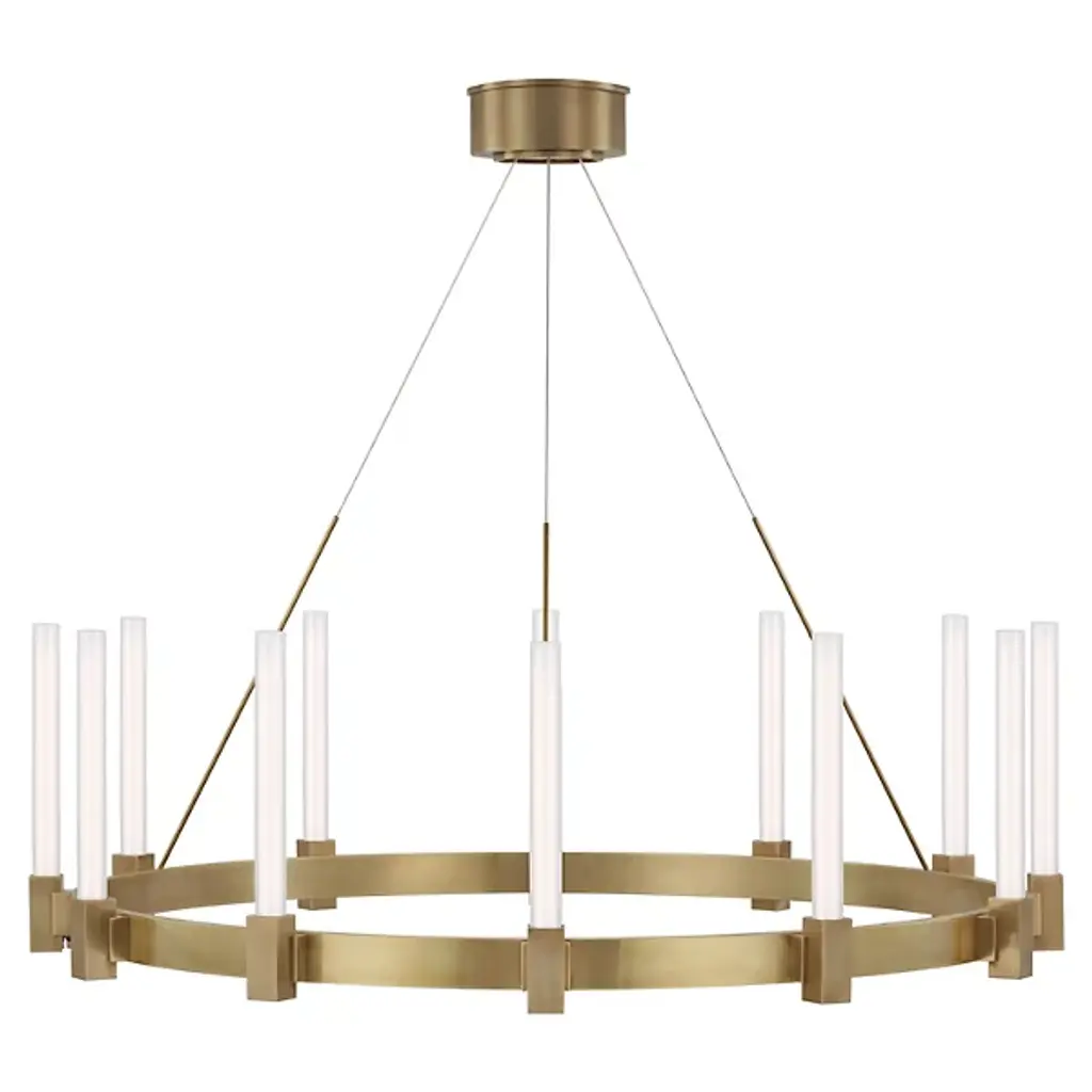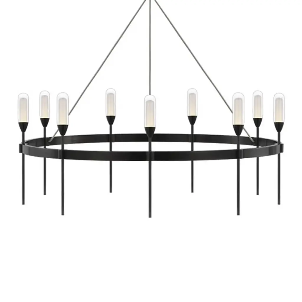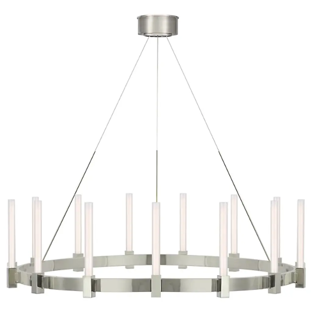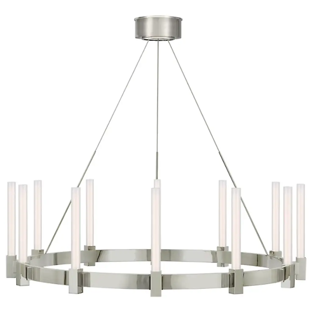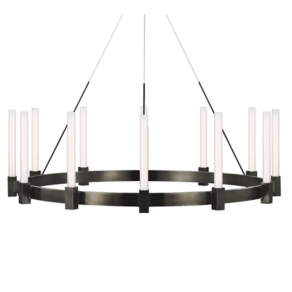 Experience the thrill of multi-light luminescence with the Mafra LED Chandelier by Visual Comfort Signature, formerly known as Visual Comfort, Beautiful steel has been formed into a slender, circular form that resembles the body of a carousel. Standing vertically atop this steel frame are cylindrical light encasements supported by the linear addendums that extend from a canopy at the ceiling. The chandelier’s encircling nature allows for the lightbulbs within the casings to project light in an all-enveloping way, ensuring that your gathering will be aptly supplied with illumination.