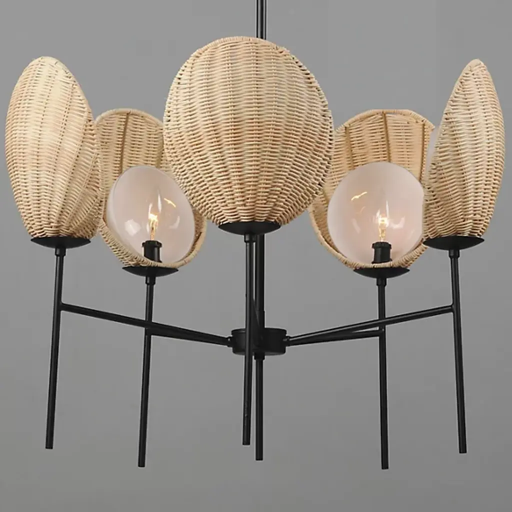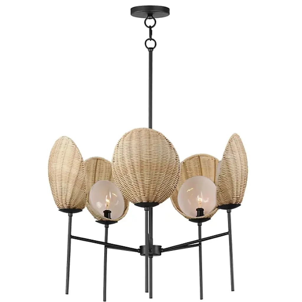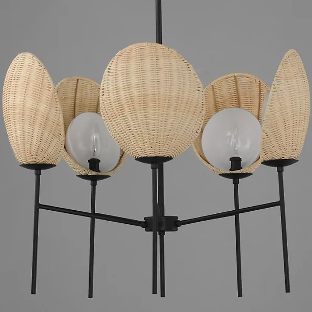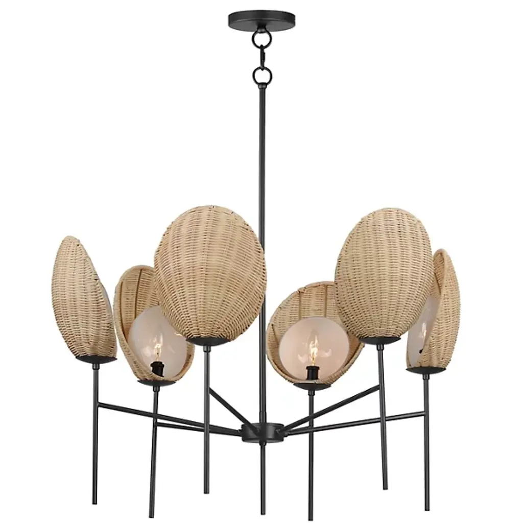 Go on a journey to a tropical destination with the Maldives Chandelier from Maxim Lighting. Immerse yourself in the allure of this exquisite light fixture that captures the essence of island living. The chandelier showcases hand-woven wicker shades meticulously curved around precisely cut opal glass, creating a harmonious blend of craftsmanship and coastal charm. Suspended on slender supports of durable steel, the handcrafted shade structures evoke visions of beachside bungalows.