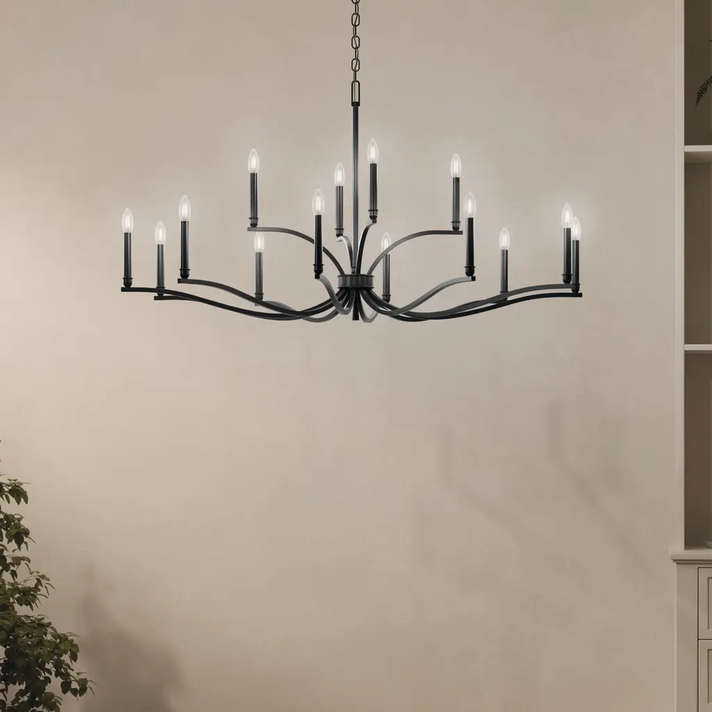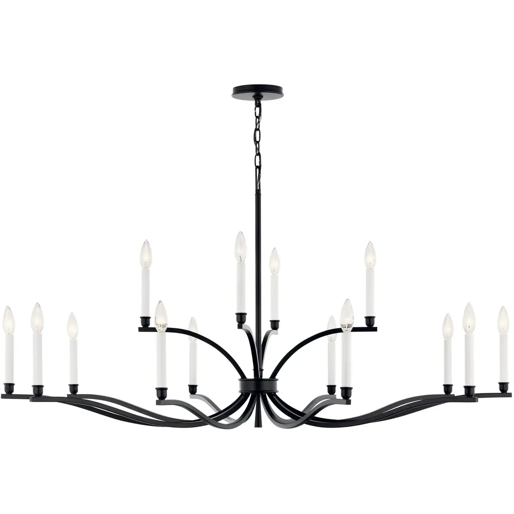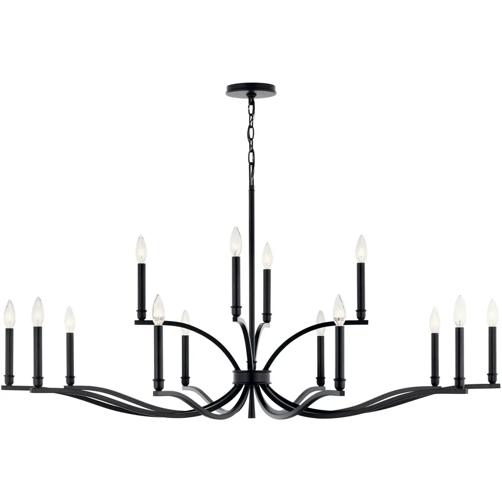Malene 52.75 Inch 14 Light 2-Tier Chandelier in Black
