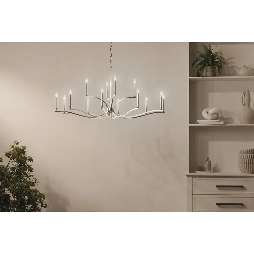 Malene 52.75 Inch 14 Light 2-Tier Chandelier in Polished Nickel