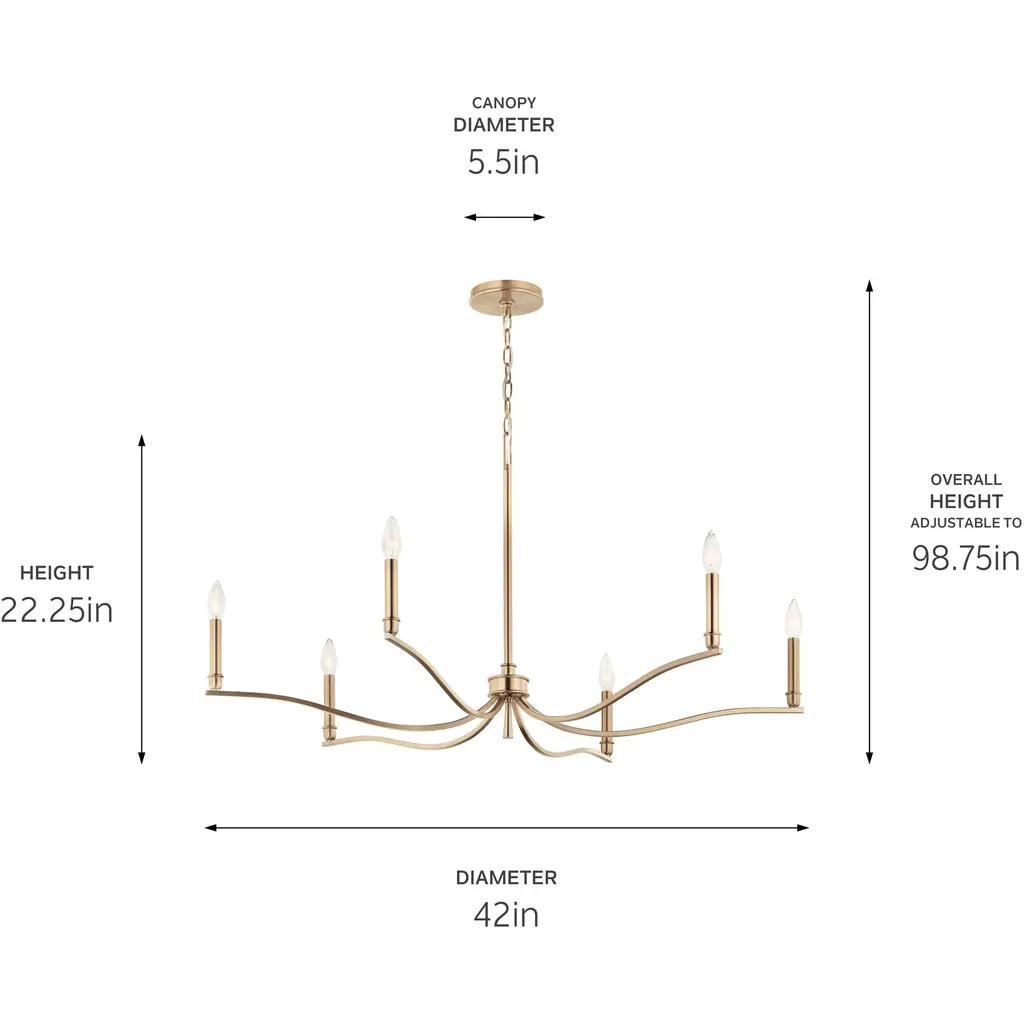 Malene 42 Inch 6 Light Chandelier in Champagne Bronze