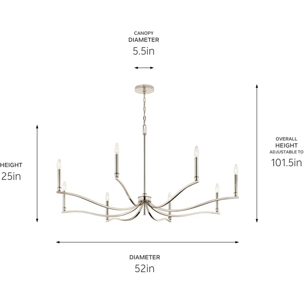 Malene 52 Inch 8 Light Chandelier in Polished Nickel