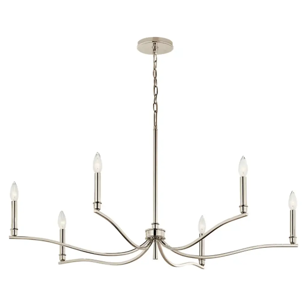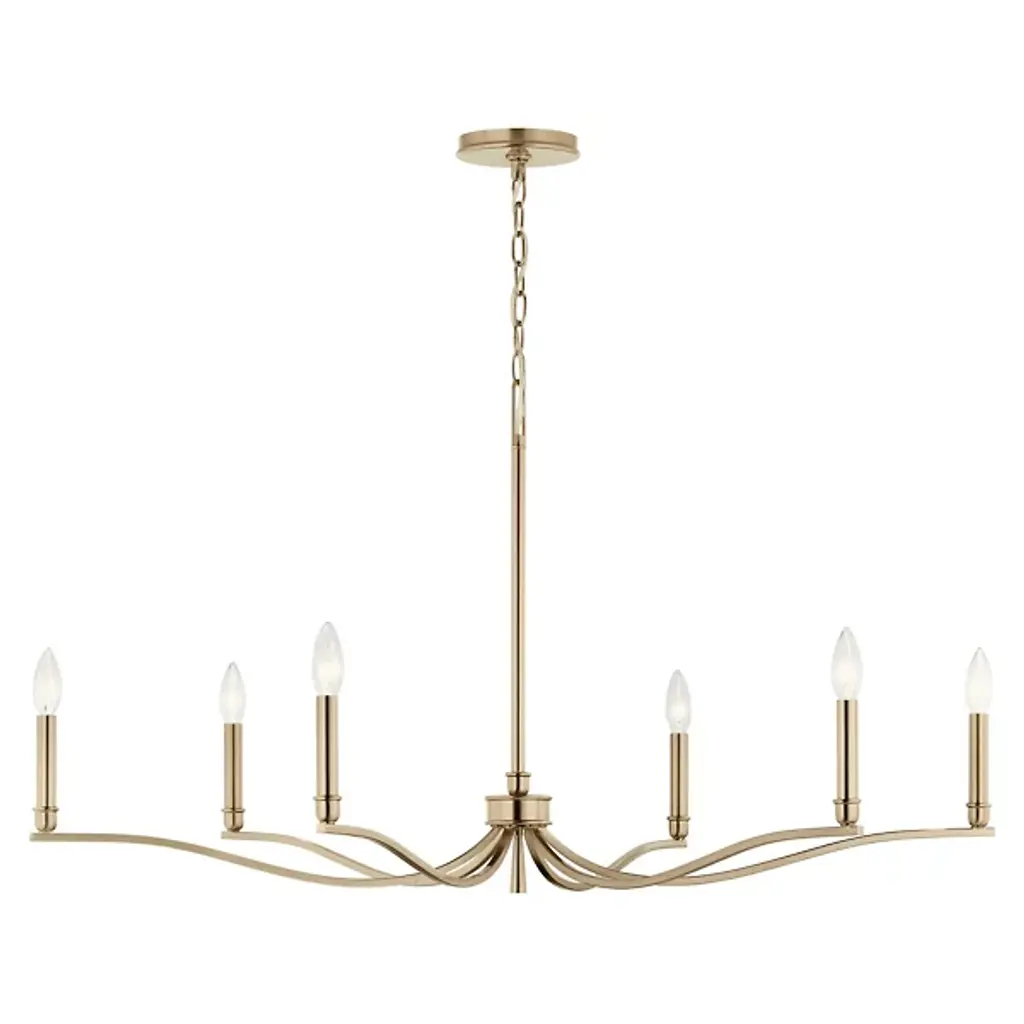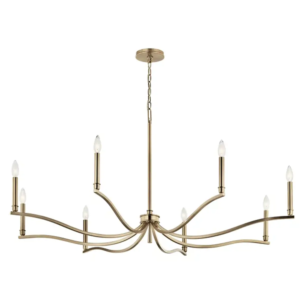 Drawing inspiration from the serene flow of rippling water, the Malene Chandelier from Kichler embodies grace and elegance. Its soft, sweeping arms and stacked details evoke a sense of gentle movement and captivating beauty. This exquisite piece comes with two candle sleeves, offering versatility in style—choose between white for a contrasting, traditional aesthetic or champagne bronze for a modern touch. Delicate details on the sleeve holder accentuate its understated sophistication, adding to its allure.