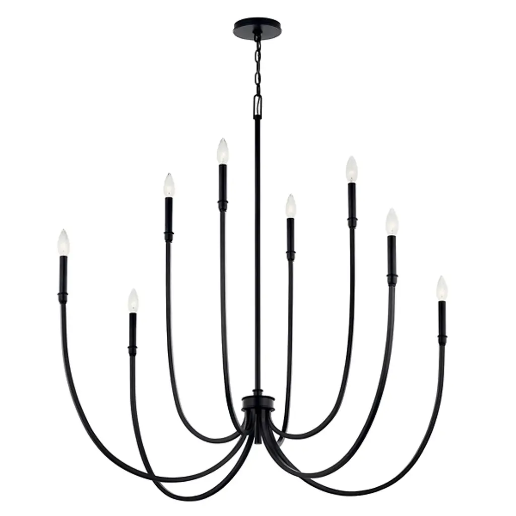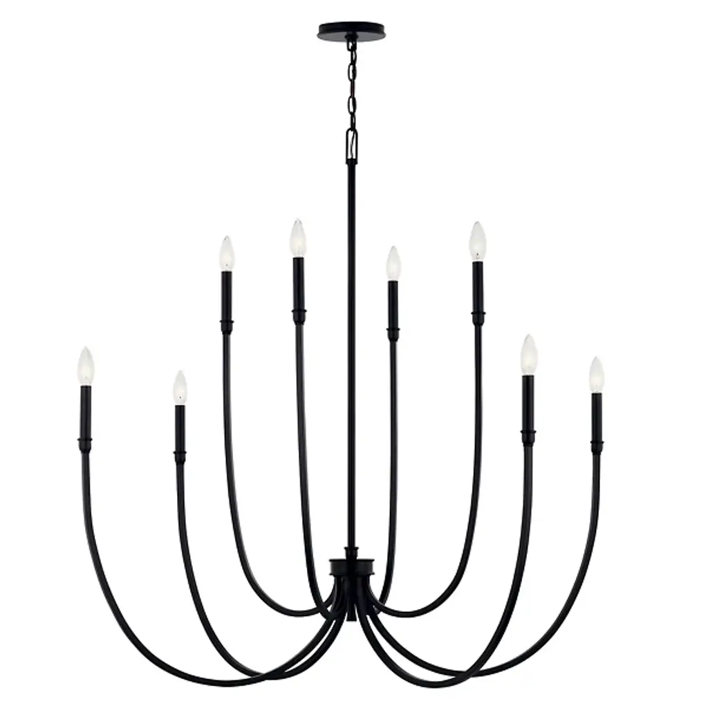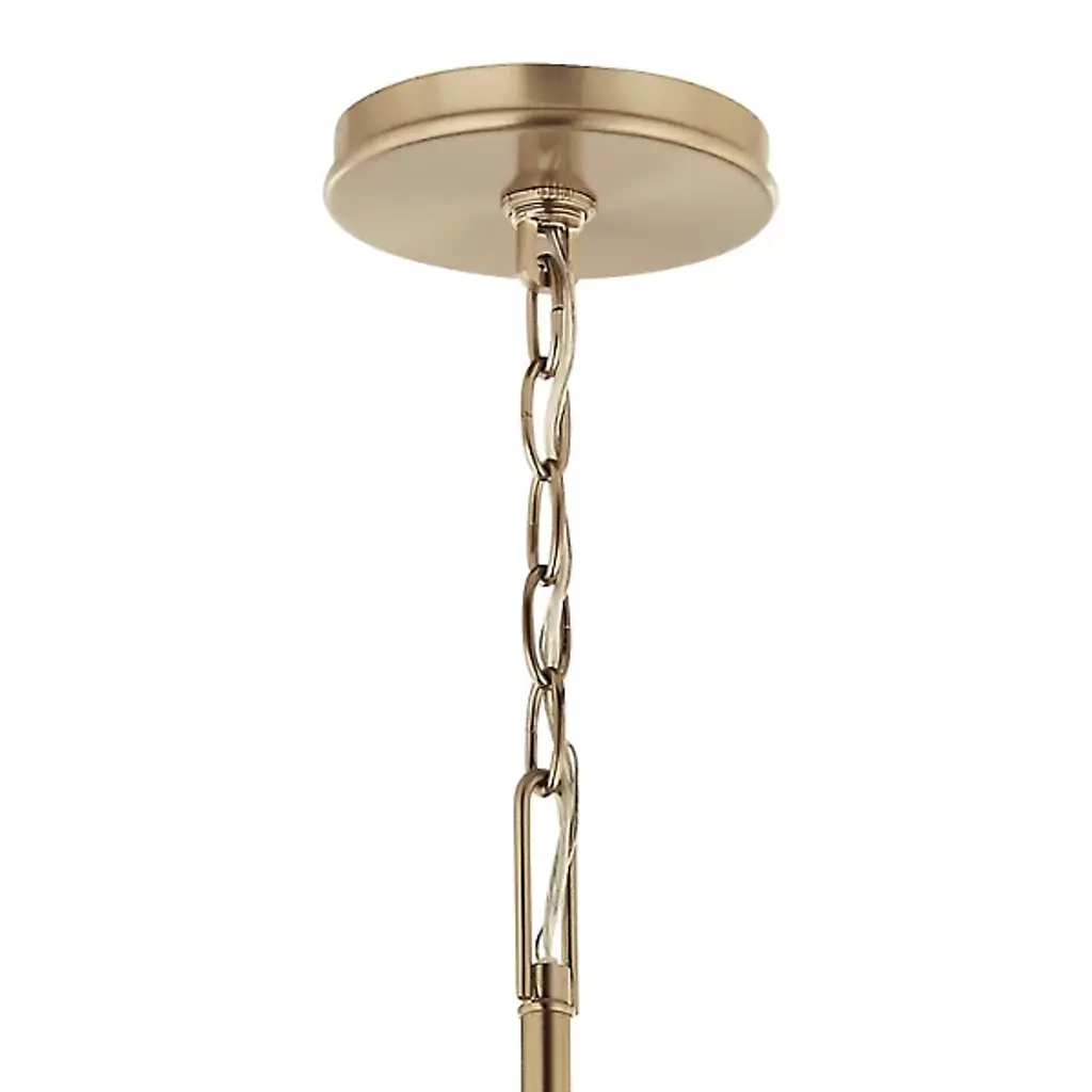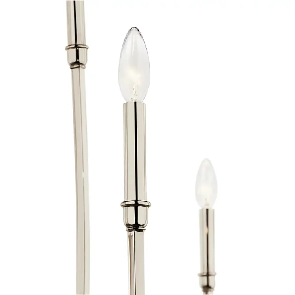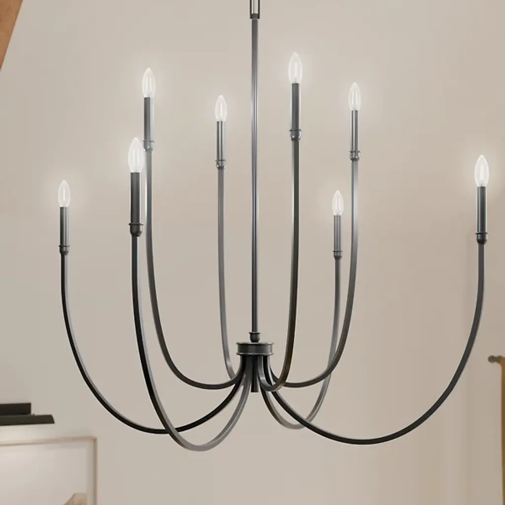 Inspired by the serene undulation of rippling water, the Malene Foyer Chandelier from Kichler epitomizes grace and elegance. Its gentle, sweeping arms and layered intricacies evoke nature's tranquil flow and captivating allure. With two candle sleeves provided, customize the aesthetic—choose white for a traditional contrast or champagne bronze for a contemporary touch. Delicate details on the sleeve holder add to its refined sophistication, imparting understated charm and allure to any space.