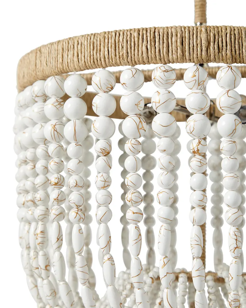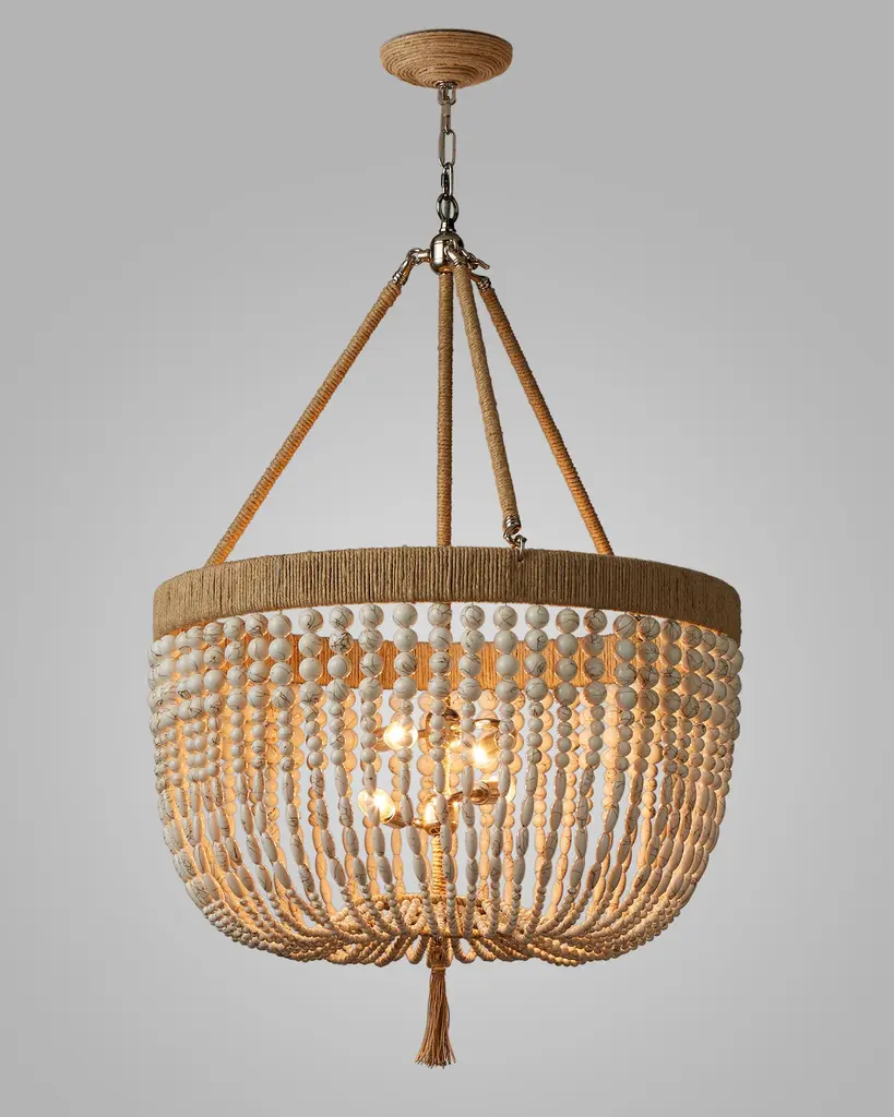 Hand-strung beads stun in fashionable form. Dapples of gold. Strands of hemp. The swish of fringe. It shimmers in the light.