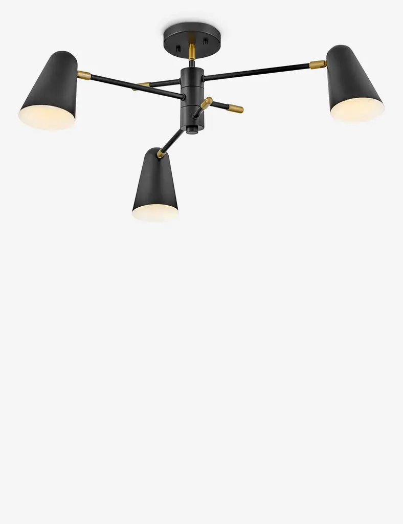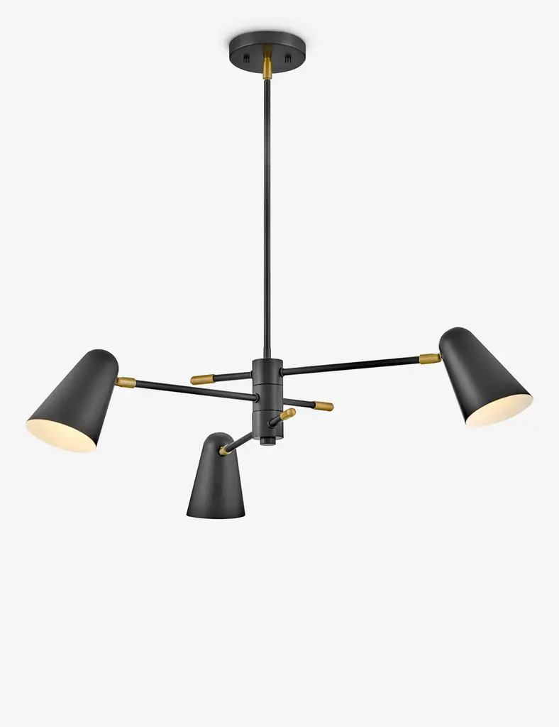 The Mancini chandelier offers an adjustable design with mid-century warmth. The articulating arms and pivoting shades let you curate your ambiance from above. This dynamic chandelier design is the perfect way to bring a touch of brilliance to practical lighting.