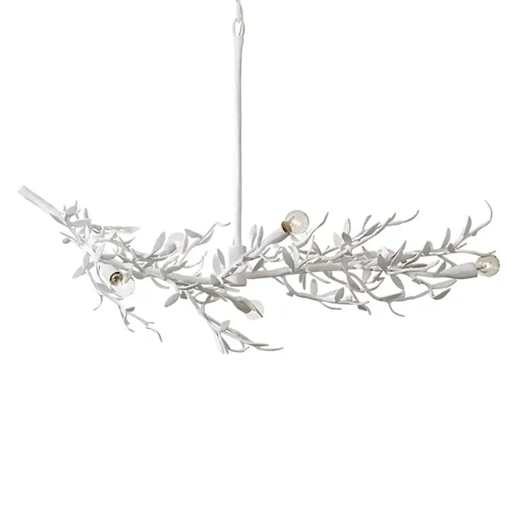 Beautifully branching out. The Mandeville 6-Light Chandelier by Visual Comfort Signature, formerly known as Visual Comfort, is rooted in designer style, organic appeal and whimsy. Unique nature-inspired decorative lighting, it features a delicate leafy branch for a candelabra. Done in an elegant finish, this ceiling fixture brings a bit of the enchanted forest inside to contemporary dining areas or living spaces.
