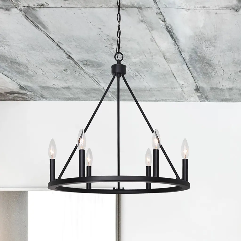 This 6 light Chandelier from the Mara collection by Canarm will enhance your home with a perfect mix of form and function. The features include a Black finish applied by experts. This item qualifies for free shipping!