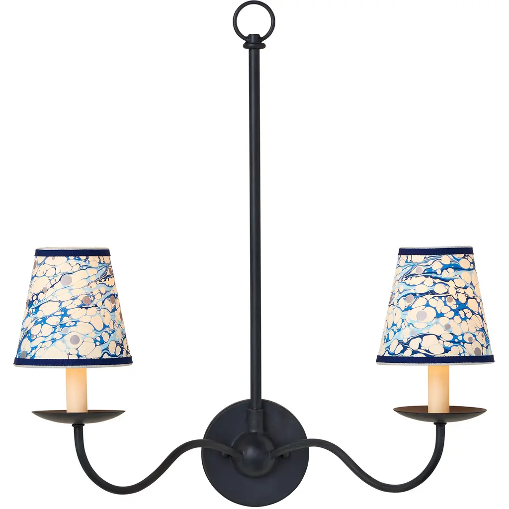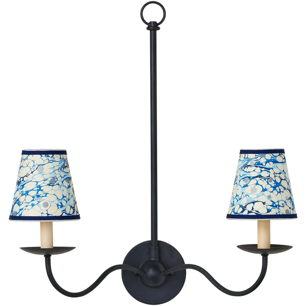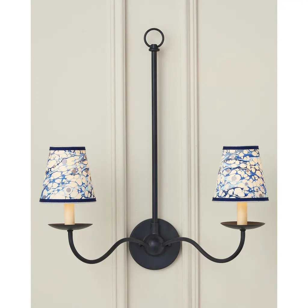 Petite shades are an easy way to bring added style to a space while also introducing color and texture, particularly when they are made from artisanal marbleized paper and ornamented with two layers of grosgrain ribbon. The Marble Blue Lace Paper Tapered Chandelier Shade has a lace pattern in blues that was achieved by a New England atelier. Patterns will vary slightly due to the nature of the marbleizing process.