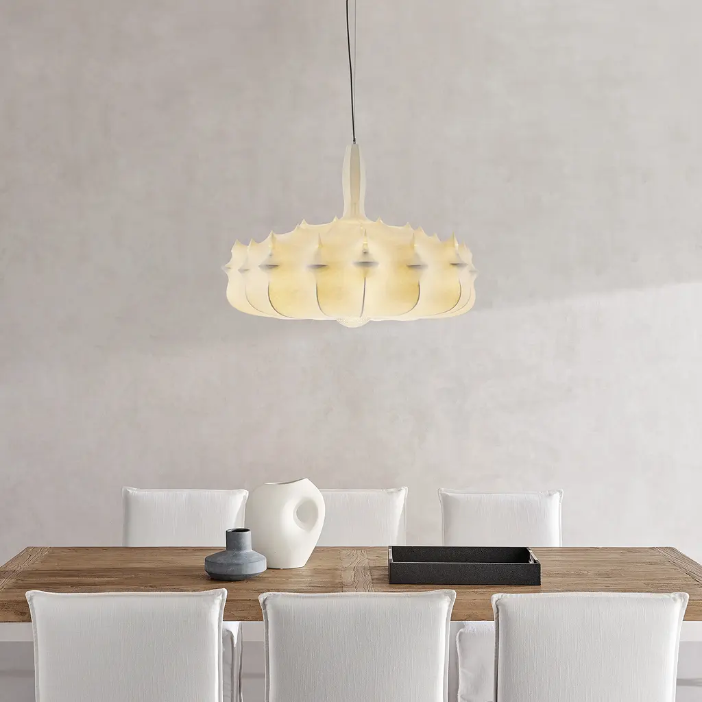 The Marcel Wanders Cocoon Suspension Paper Chandelier Lamp is a symphony of modern luxury and artistic expression. Its intricate design, displayed as a stunning cascade of delicate paper, harmoniously diffuses light to create an enchanting ambiance, adding a touch of contemporary elegance to any space.