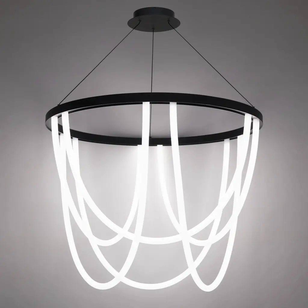 Flexible and fashionable. Loops of diffused LED light grace a circlet of shining metal, establishing a bright presence.
