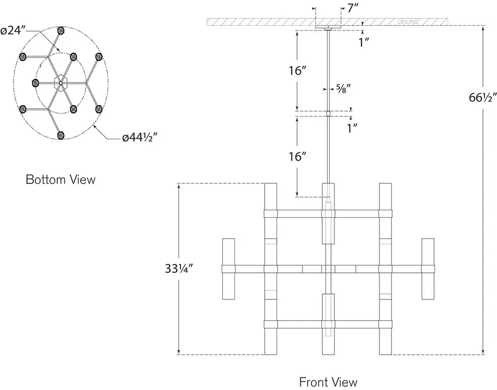 Inspired by the clean lines and sophistication of midcentury design, this chandelier is crafted of brass with a lustrous hand-rubbed finish. Each of the 12 cylindrical white glass shades conceals two bulbs and casts ample light throughout a space.