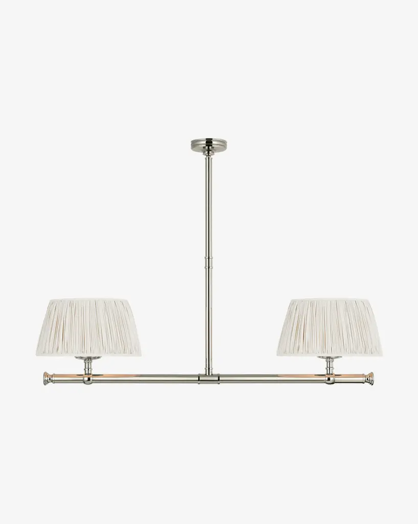 Introducing the Marion 56" Linear Chandelier, a masterpiece of design by Chapman & Myers. Part of the Visual Comfort Signature Collection, this chandelier exudes elegance and sophistication. Its timeless design is crafted with a sturdy brass base, complemented by luxurious shades that offer a soft, ambient glow. Perfect for adding a touch of refined style to any dining room or grand entryway, the Marion Chandelier is a testament to exquisite craftsmanship and enduring beauty. Transform your space with this stunning piece that seamlessly blends classic charm with modern elegance.