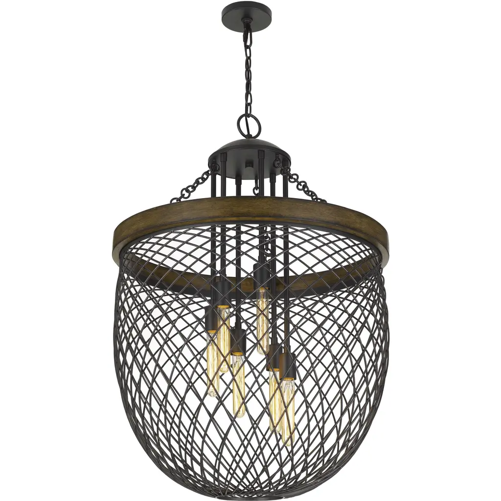 Marion metal/wood mesh shade chandelier (Edison bulbs NOT included)