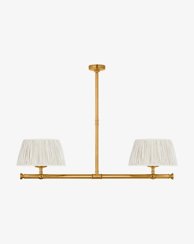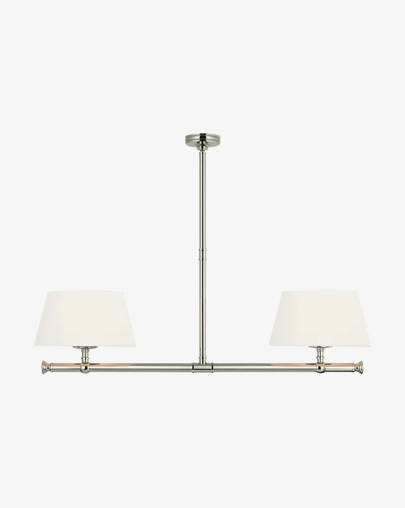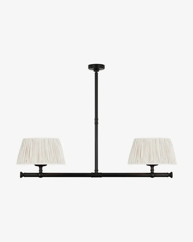 Elegant and geometric, the Marion Linear Chandelier boasts thoughtful craftsmanship with its subtle details. The sleek structure is available in your choice of finish to complement the simple linen shades.
