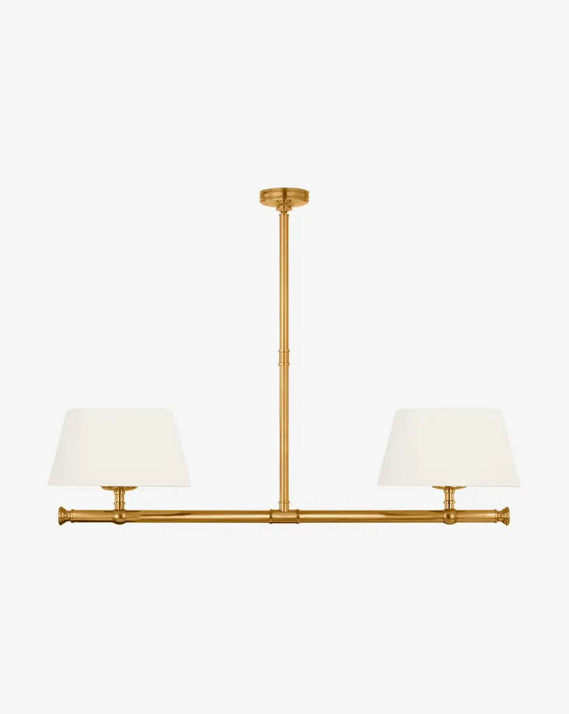 Elegant and geometric, the Marion Linear Chandelier boasts thoughtful craftsmanship with its subtle details. The sleek structure is available in your choice of finish to complement the simple linen shades.