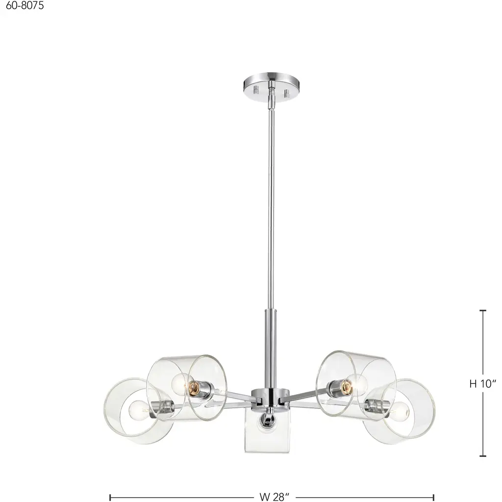 Marlowe - 28 Inch 5 Light Chandelier - Polished Nickel with Clear Glass