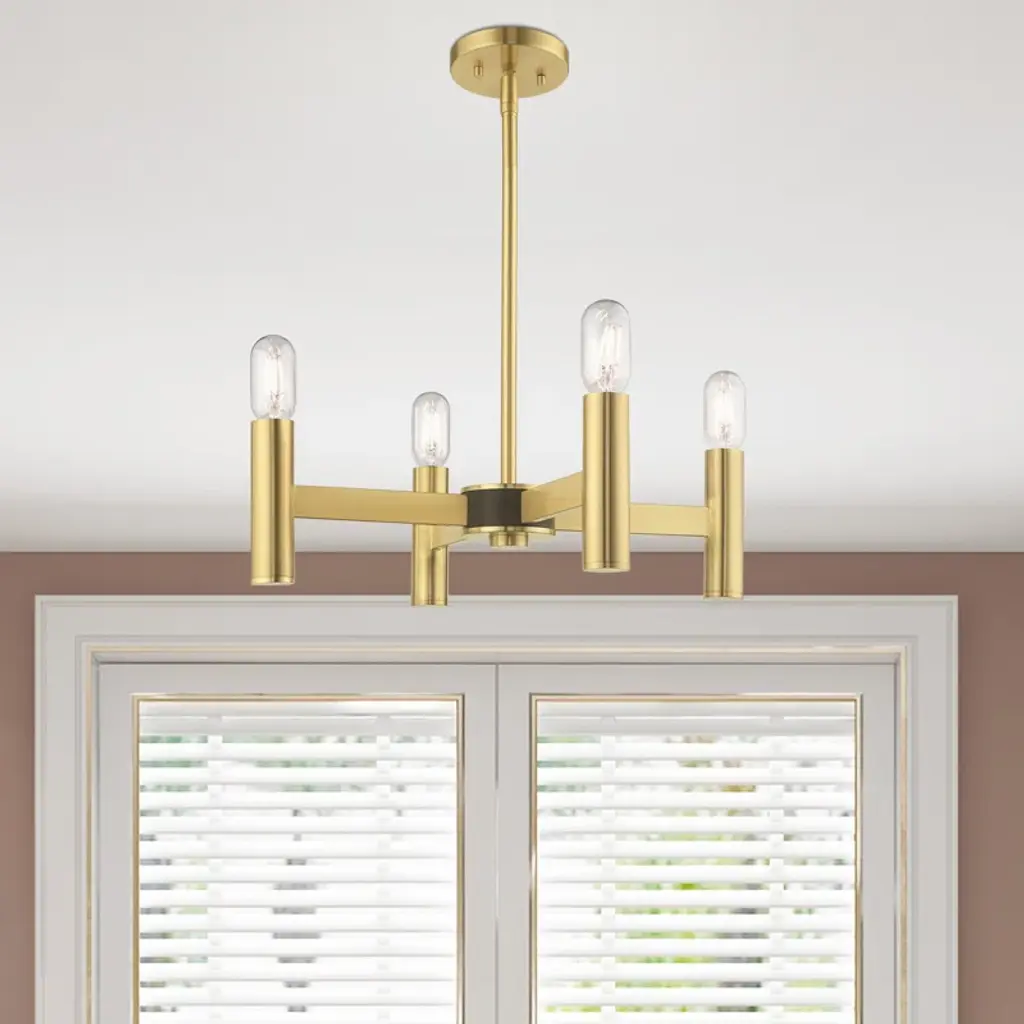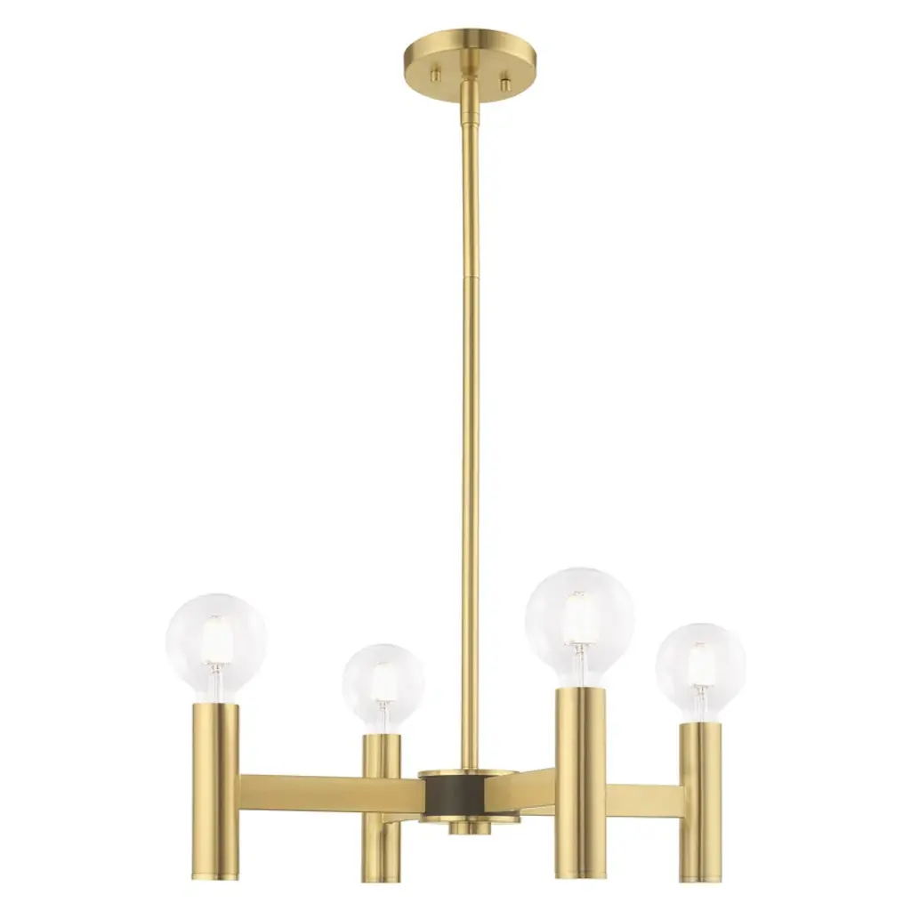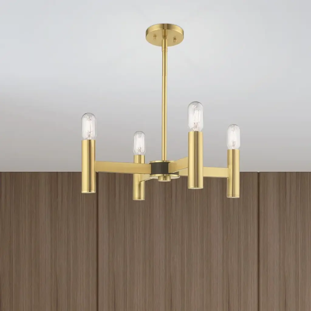 Exposed bulb sockets are fixed over the finish to create an eclectic look perfect for mid-century modern or transitional spaces wanting an industrial touch.