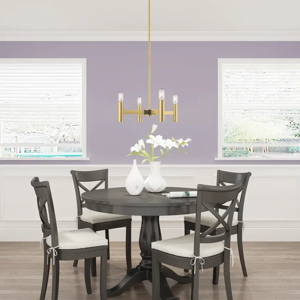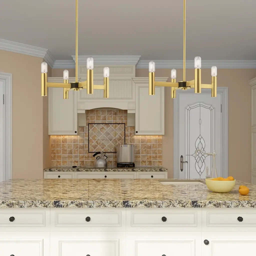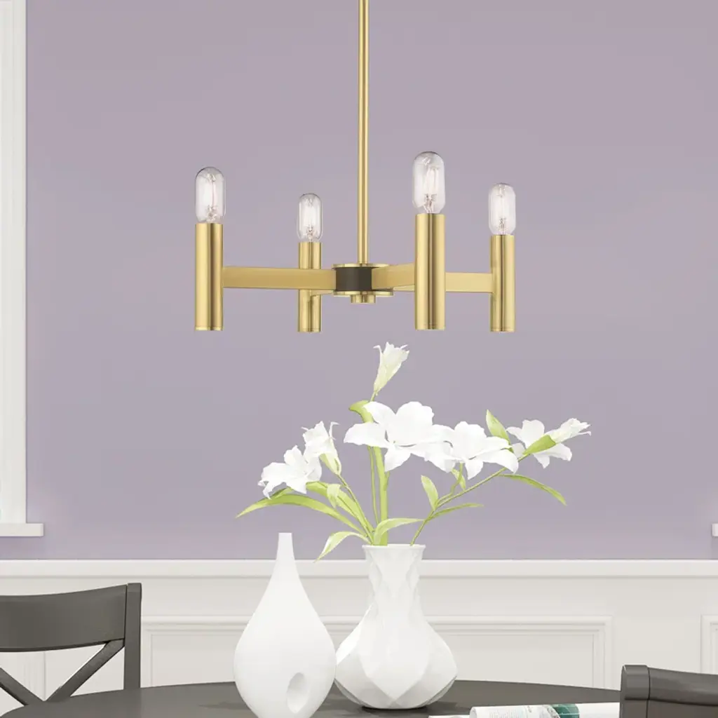 Exposed bulb sockets are fixed over the finish to create an eclectic look perfect for mid-century modern or transitional spaces wanting an industrial touch.