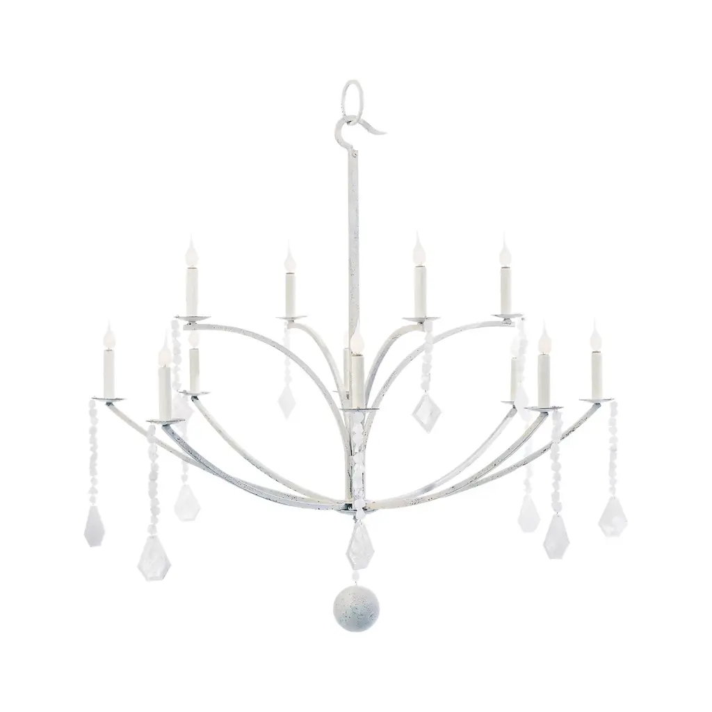Aged Silver Leaf 10 Light Chandelier With Clear Crystals