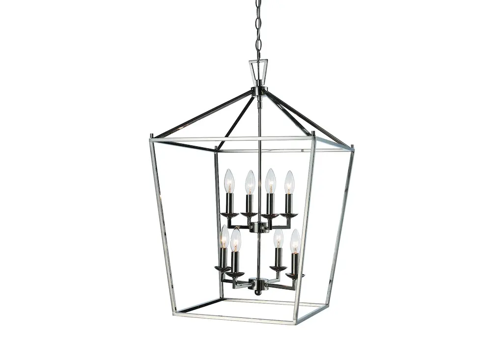 This Martin 19X26 Chrome 8Lt Lantern Chandelier is the perfect addition to any rustic-themed home. Made of durable metal, this chandelier is both stylish and functional.