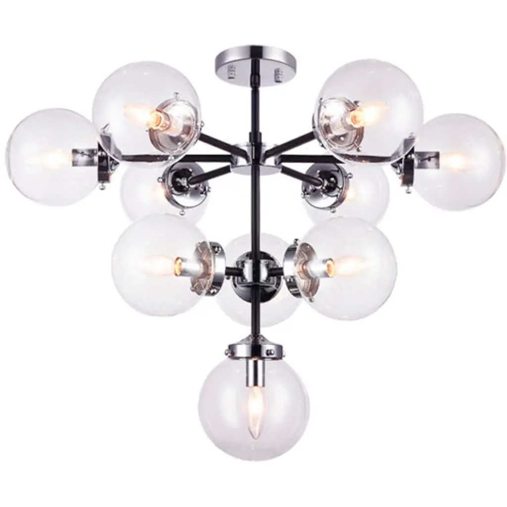 Maru 10 Light 30 Inch Chrome Chandelier Ceiling Light In Chrome And Clear
