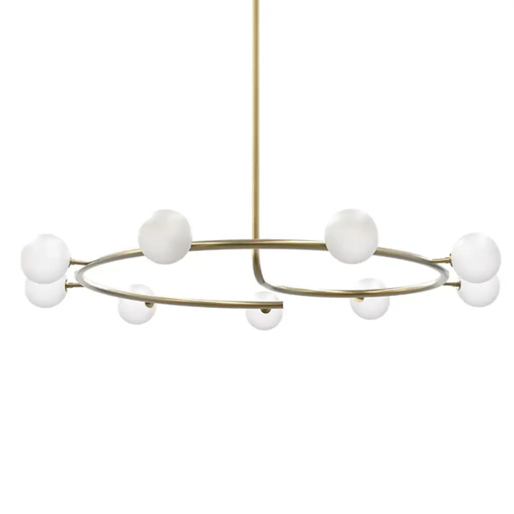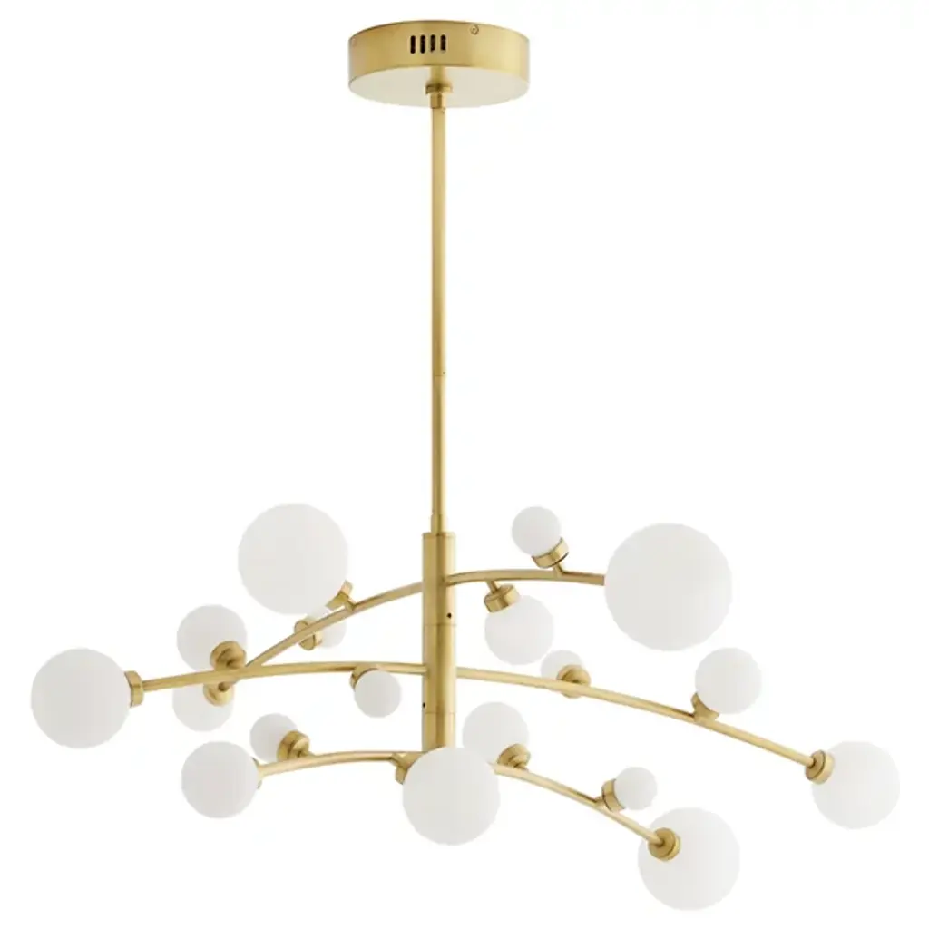 Light up your home with the Transitionally styled Maser LED Chandelier by Arteriors. A canopy at your ceiling provides support for a metal dwonrod. This downrod is intersected by multiple horizontal rods aligned in a descending fashion. Onto the ends of these rods arranged in a longwise manner are beautiful globes that boast integrated LED technology. Brilliant light shines within the globes and throughout your current living or family room with ease.