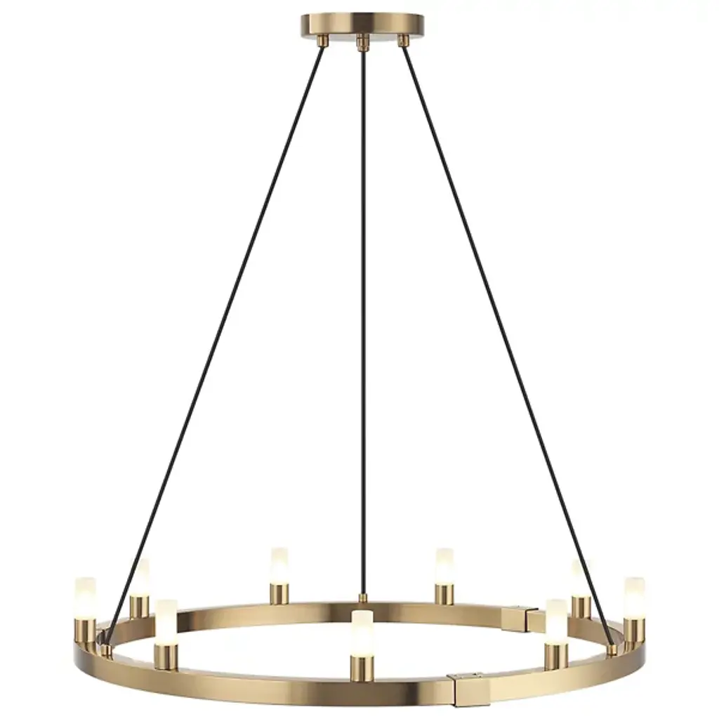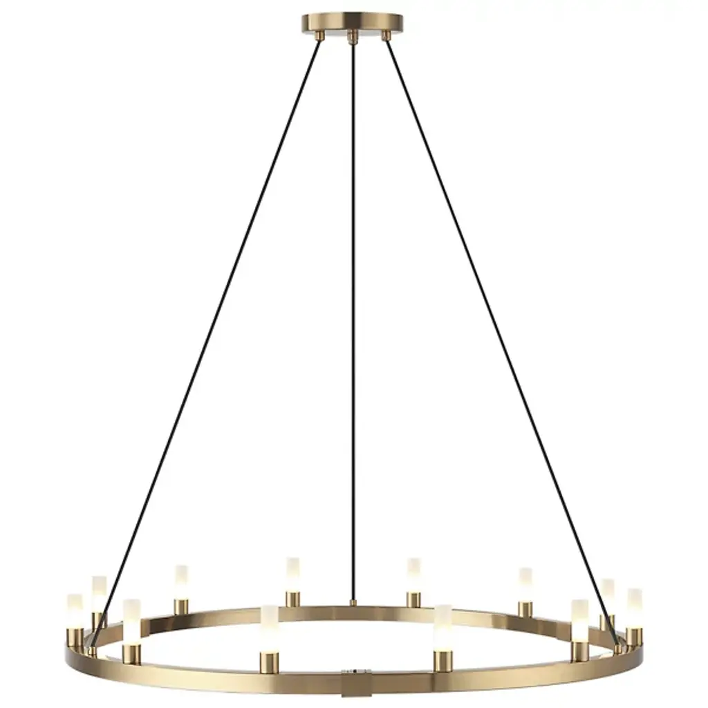 Presented by Alder & Ore, the Maurer Round Chandelier is a contemporary luxury light with mid-mod inspired touches throughout the composition. Petite glass shades line the ringed bodice and suspend by a triad of slender black fabric cords. Display the Cascadian in locales as a solo piece or in multiples for additional drama.