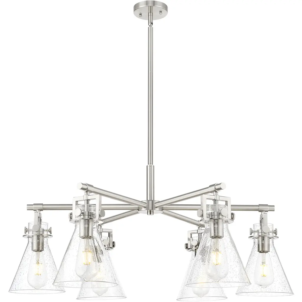 This nautical-inspired collection features Clear Seedy glass cones suspended by a yoke frame. The clear glass offers abundant lighting and compliments the styling of the fixture. Make it a more industrial look by adding filament E26 light bulbs. Canopy Included: Yes Canopy Diameter: 5.00 Sloped Ceiling Adaptable: Yes Dimmable: Yes Shade Included: Yes Shade Dimensions: 6.25