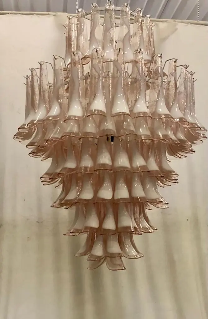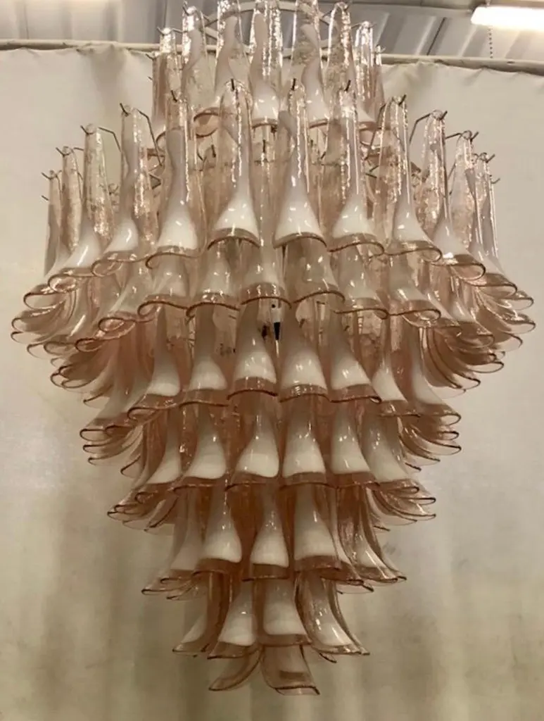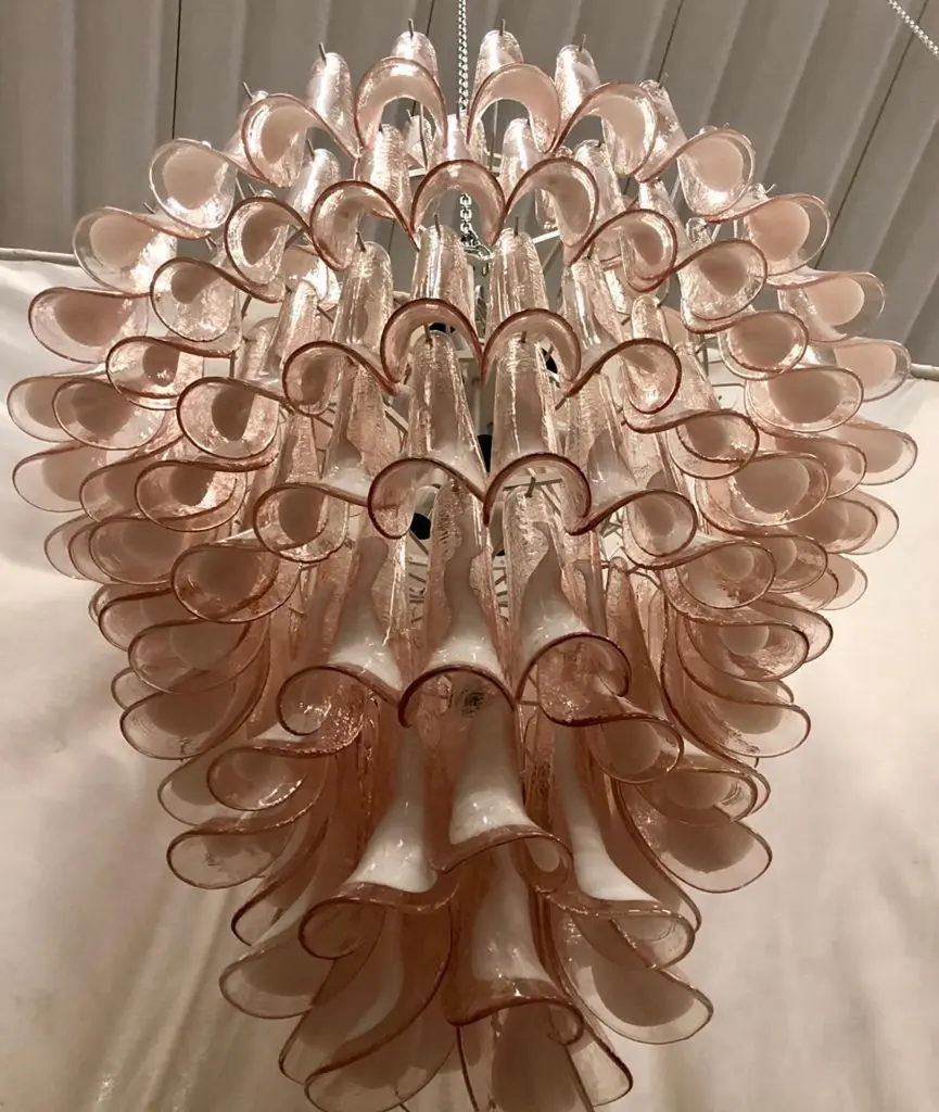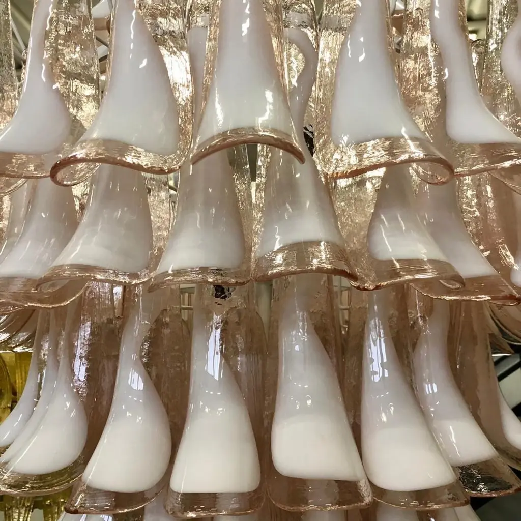 Mazzega Murano Round Light Pink And White Color Midcentury Chandelier, 2000