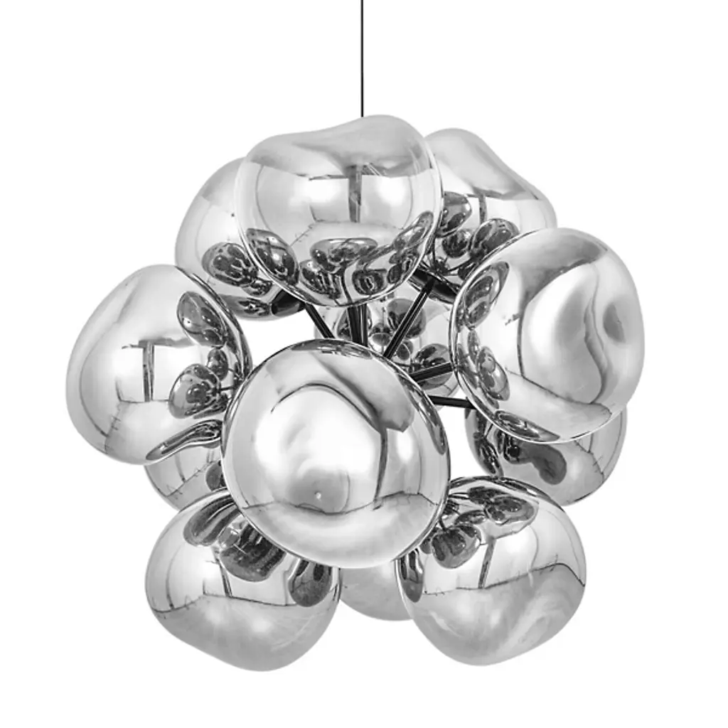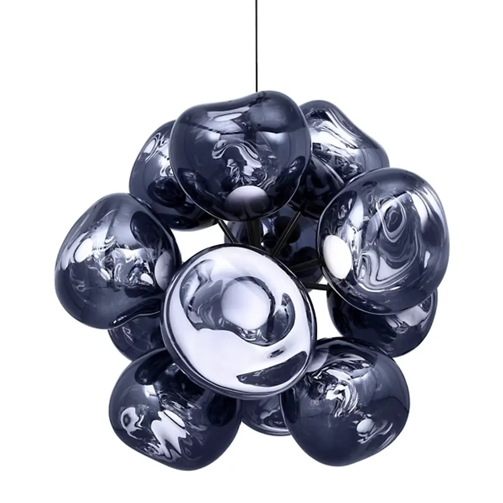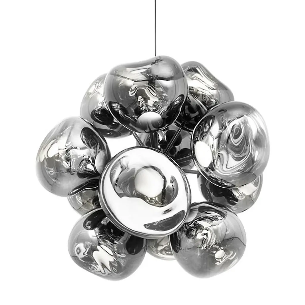 The Melt Burst LED Chandelier from Tom Dixon brings an avant-garde element to your living space. This chandelier showcases a cluster of intentionally warped globes that are consolidated for visual intrigue. Designed by Tom Dixon, Melt lives up to its name as the polycarbonate and steel forms seemingly melt before your eyes. An integrated LED brilliantly illuminates the chandelier with ease. This chandelier showcases a hot-blown effect. Easily adjust the brightness level of your chandelier with an ELV dimmer.