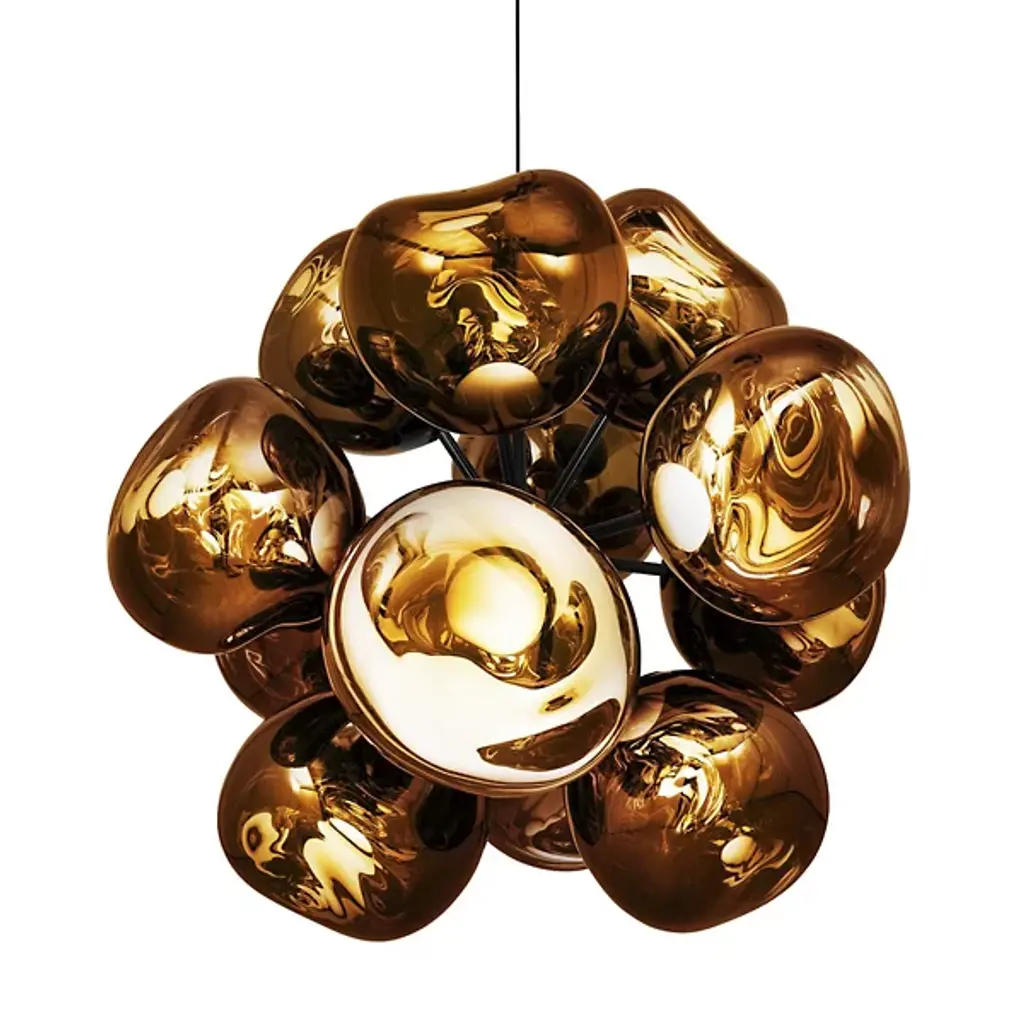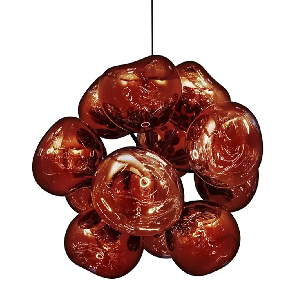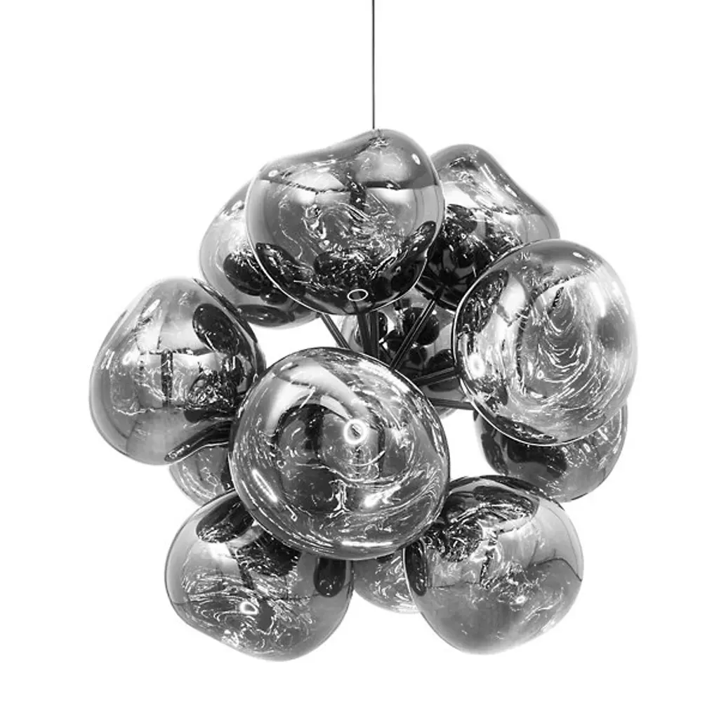 The Melt Burst LED Chandelier from Tom Dixon brings an avant-garde element to your living space. This chandelier showcases a cluster of intentionally warped globes that are consolidated for visual intrigue. Designed by Tom Dixon, Melt lives up to its name as the polycarbonate and steel forms seemingly melt before your eyes. An integrated LED brilliantly illuminates the chandelier with ease. This chandelier showcases a hot-blown effect. Easily adjust the brightness level of your chandelier with an ELV dimmer.