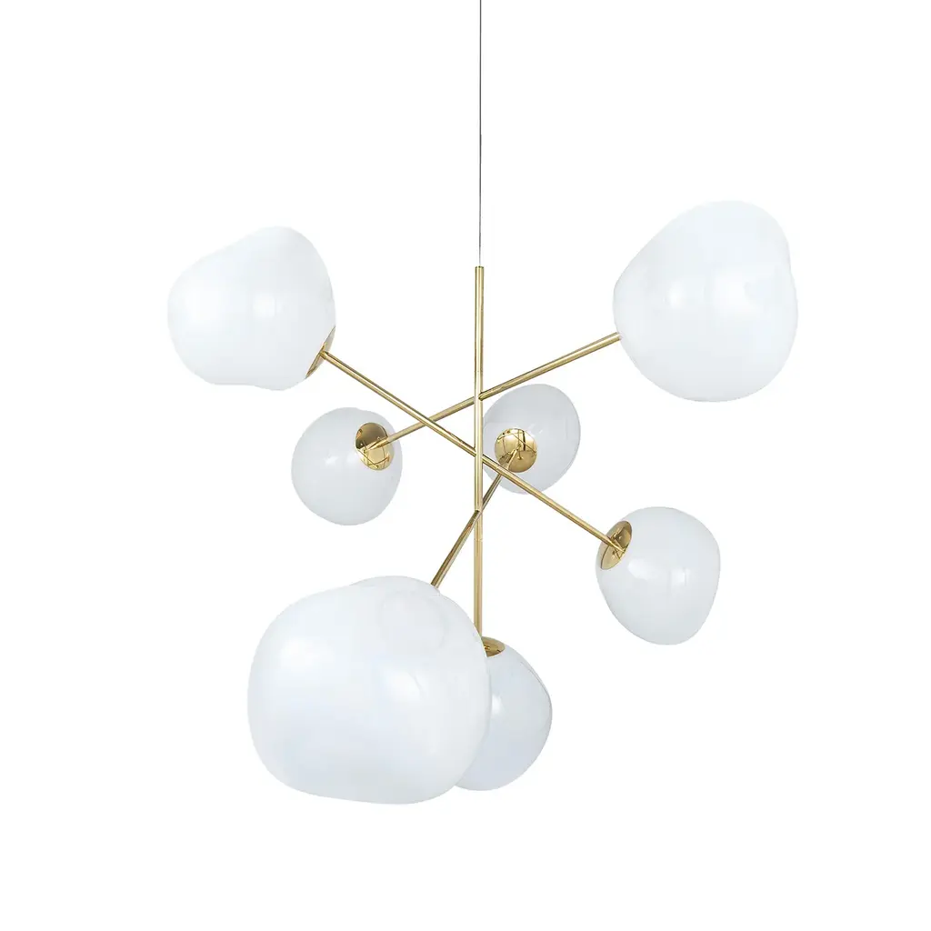 Tom Dixon sees the light — again! — by refitting his delightfully amorphous chandelier with an LED module. In a captivating smaller model with 4 orbs protruding from steel tubes or the awesome larger version with 7 extensions, Melt lends its gleam in mirror-finish copper, gold, chrome or smoke finishes. LED technology brings longer life expectancy, energy efficiency and improved performance including dimmability and light control, in a fully serviceable module with replacement components and individual drivers available if needed.