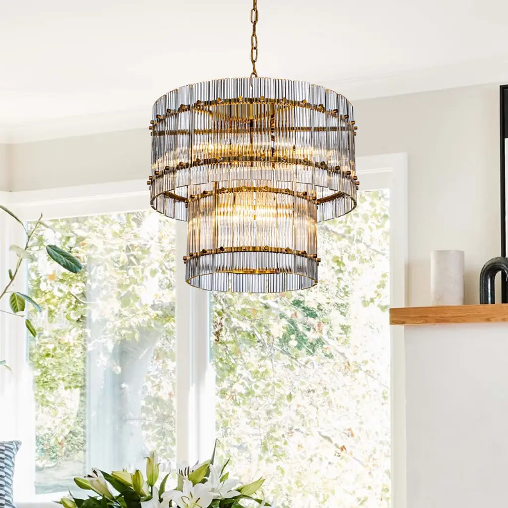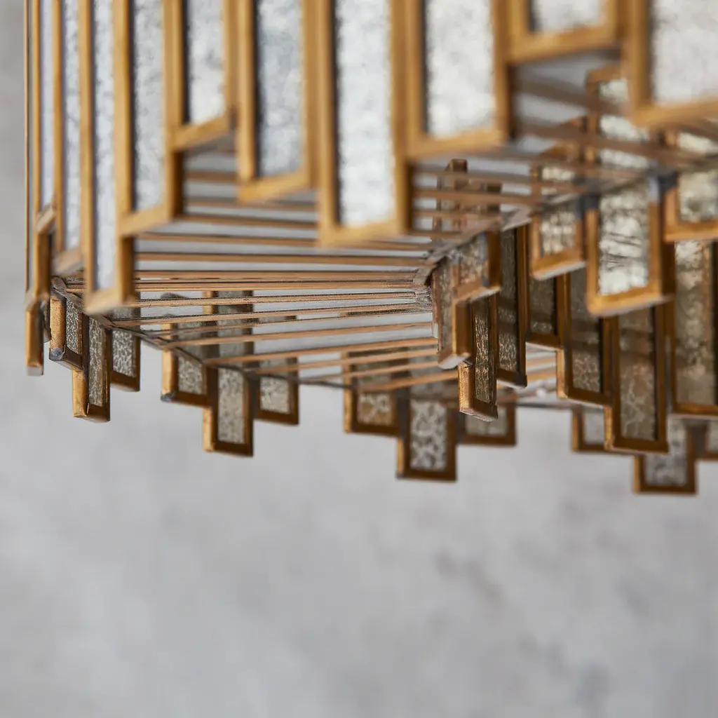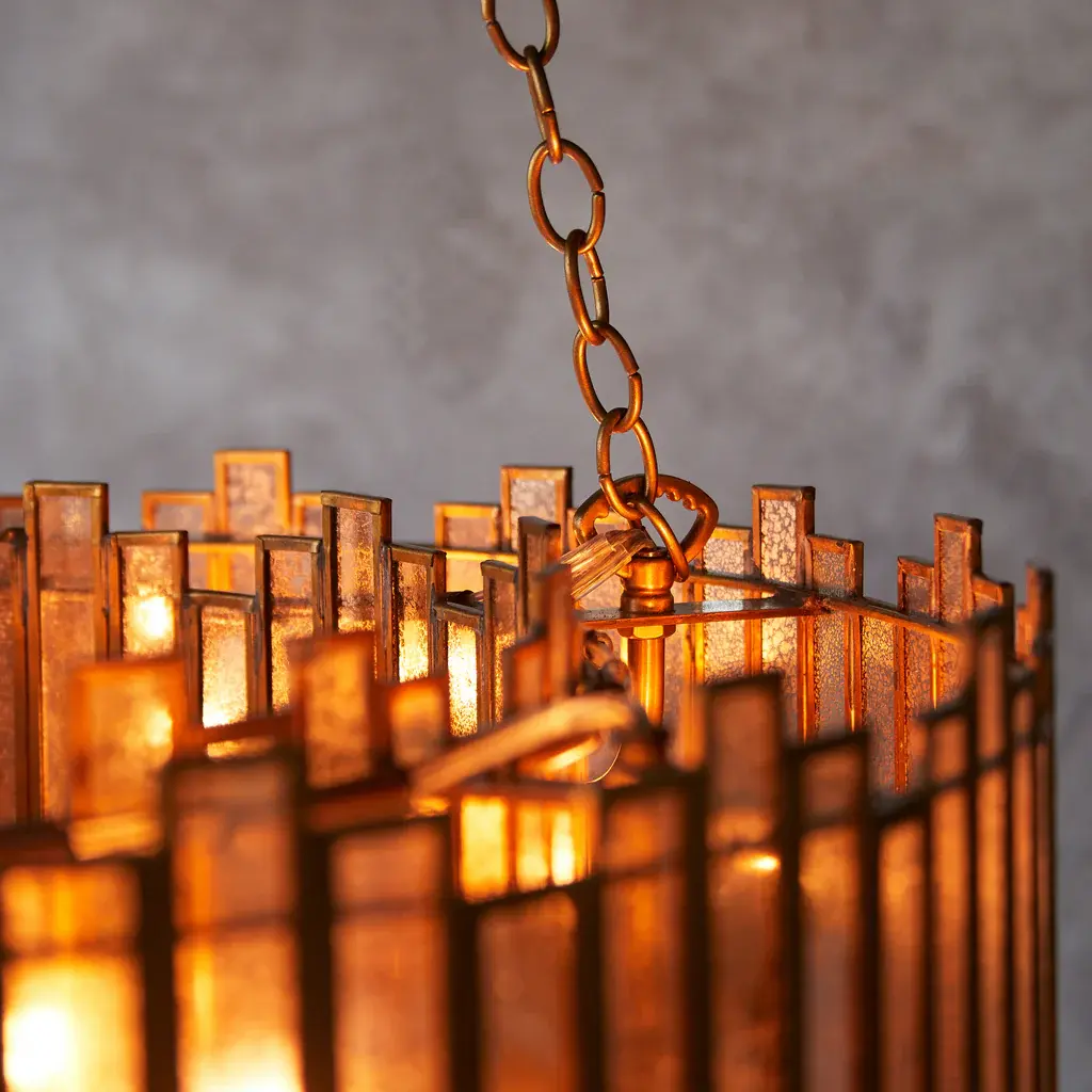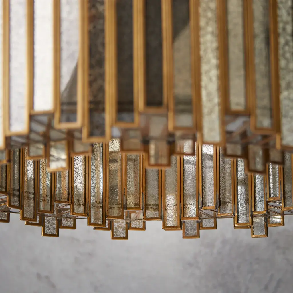 The Melvillous Chandelier boasts a striking presentation of intricate design. With an inner and outer ring of vertical brass and glass panels, connected by a horizontal ring, this chandelier emits a bold presence. Featuring 6 bulbs and a beautiful mercerized finish, it's sure to add an elevated touch of ambiance. All Pooky lighting is exclusively available in the U.S. at abc carpet & home. Originally launched in the UK, Pooky is all about bringing the magic of stunning, decorative lighting to your home.