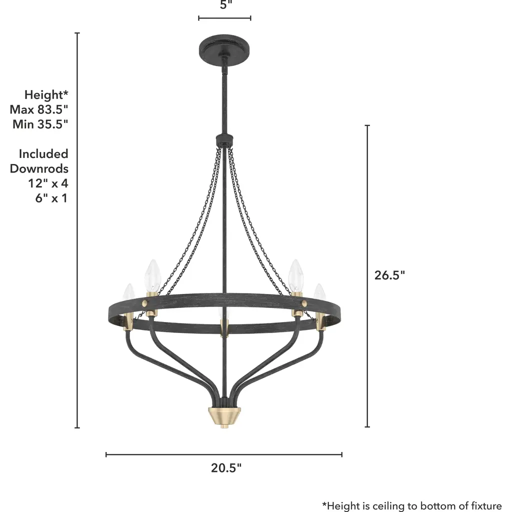 Merlin 5 Light 20 Inch Noble Bronze Chandelier Ceiling Light