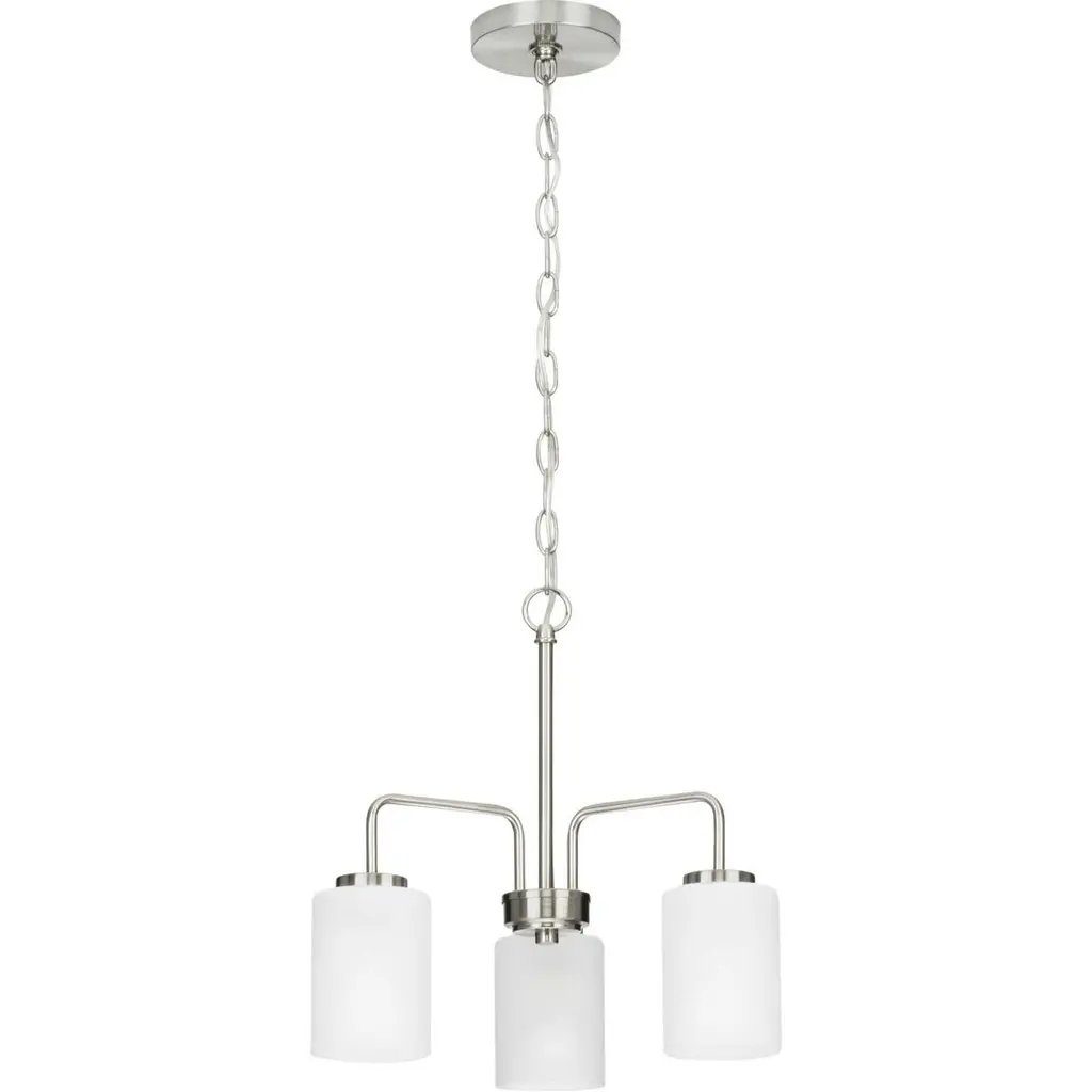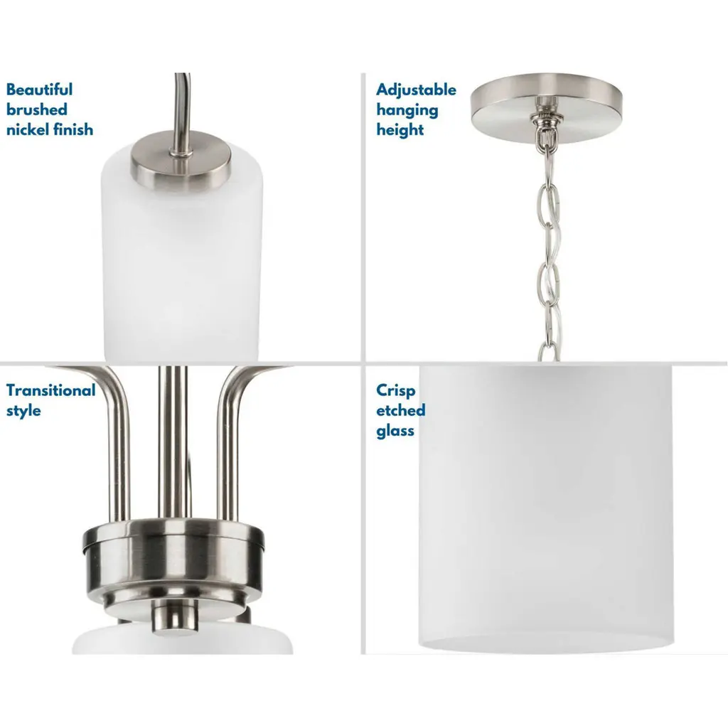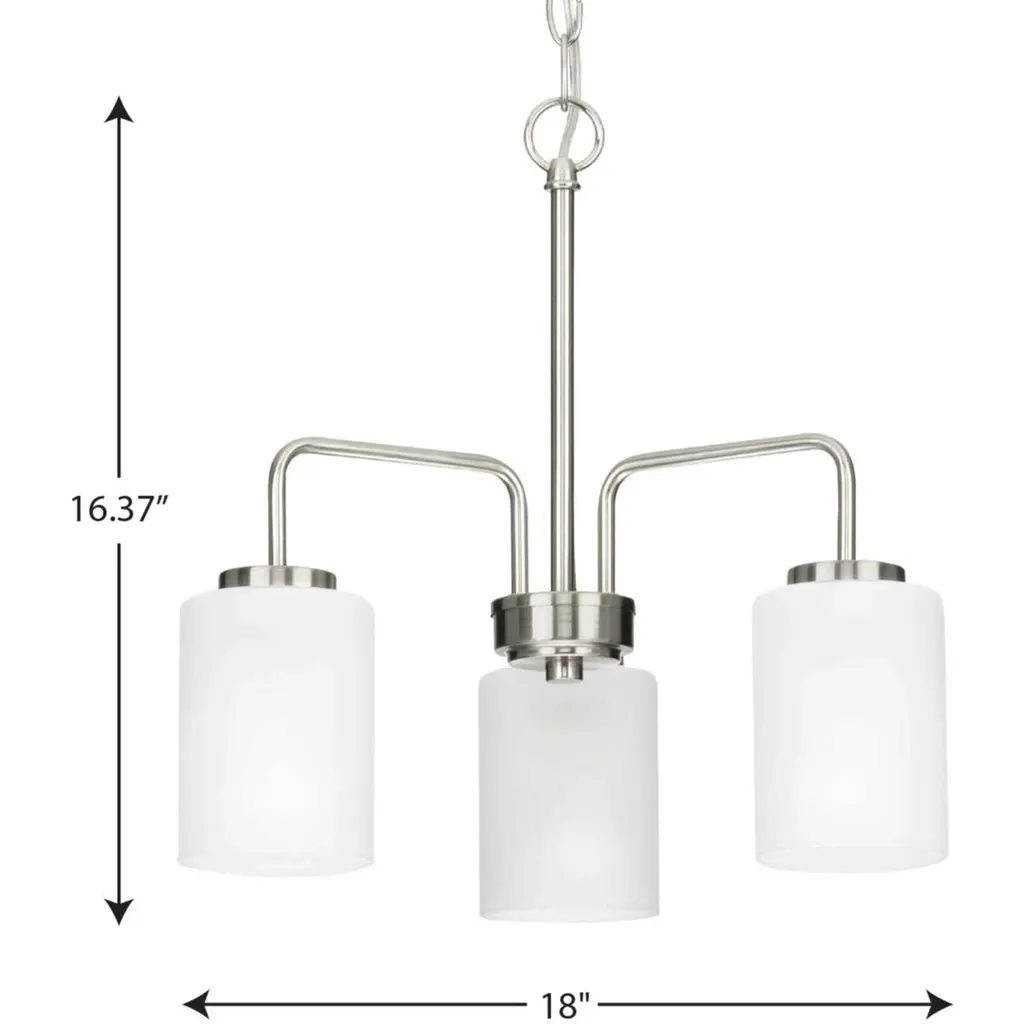 Incorporate a clean, contemporary design with the Merry Collection 3-Light Etched Glass Brushed Nickel Linear Chandelier Light. Light sources glow from within crisp etched glass shades for a generous elegant glow sure to transform your favorite living space into a modern retreat. The clean-lined tubular frame is coated in a beautiful brushed nickel finish that perfectly blends transitional and modern character.