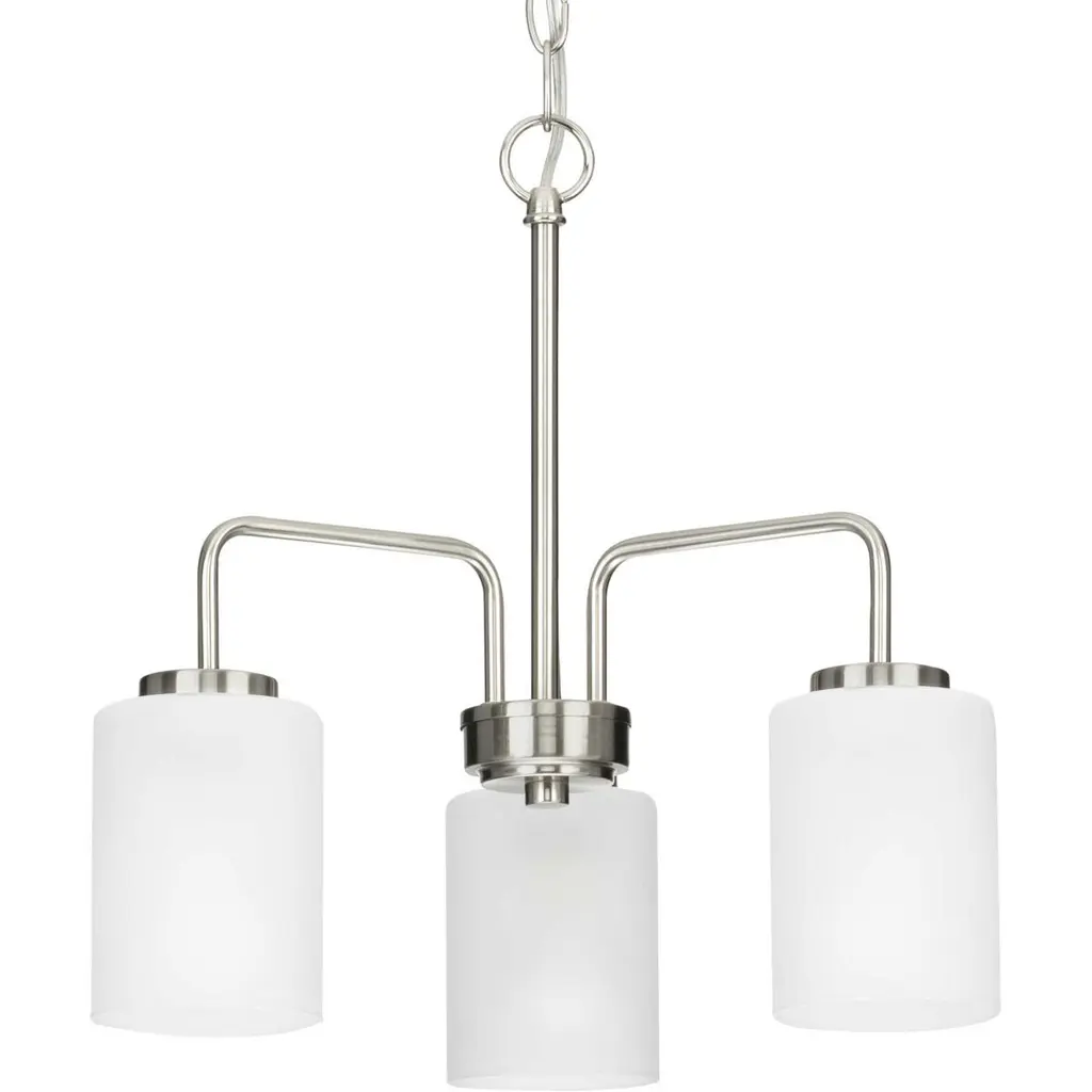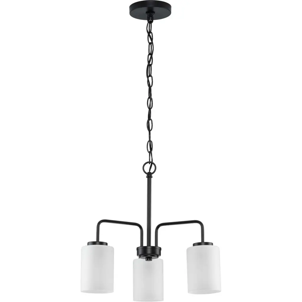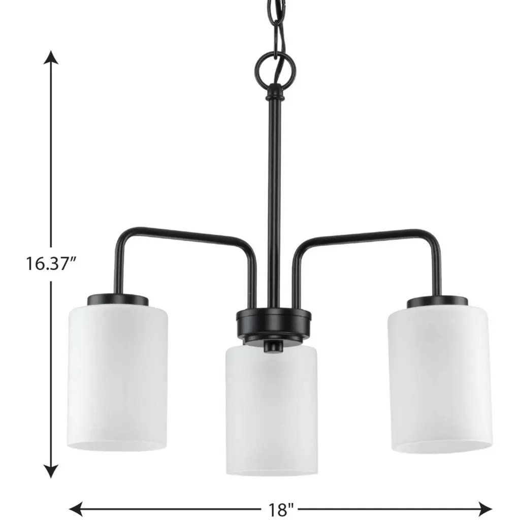 Incorporate a clean, contemporary design with the Merry Collection 3-Light Etched Glass Matte Black Linear Chandelier Light. Light sources glow from within crisp etched glass shades from a generous elegant glow sure to transform your favorite living space into a modern retreat. The clean-lined tubular frame is coated in a beautiful matte black finish that perfectly blends transitional and modern character.