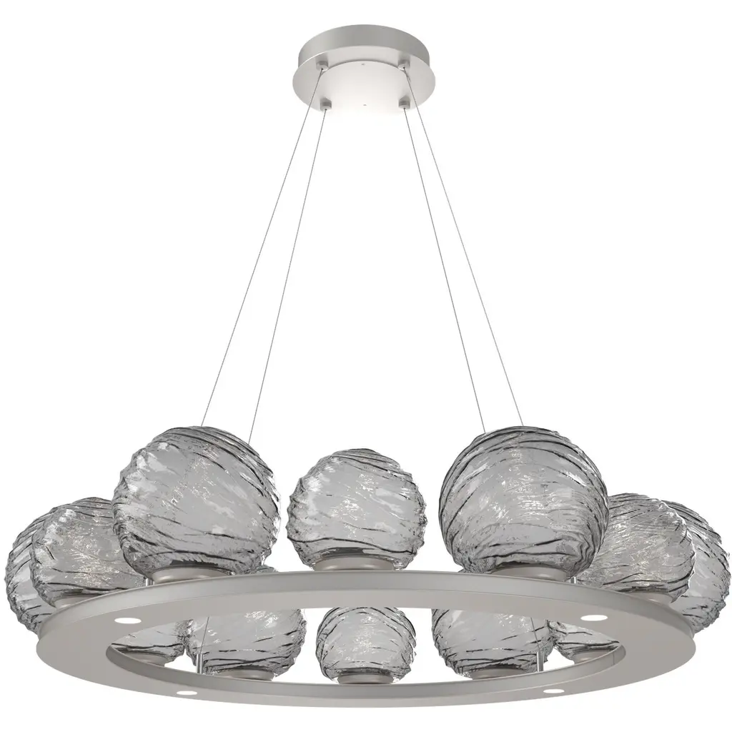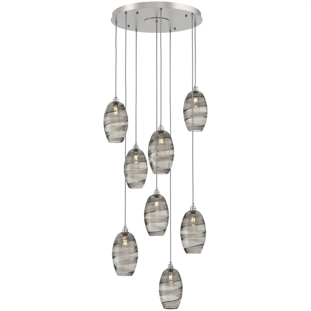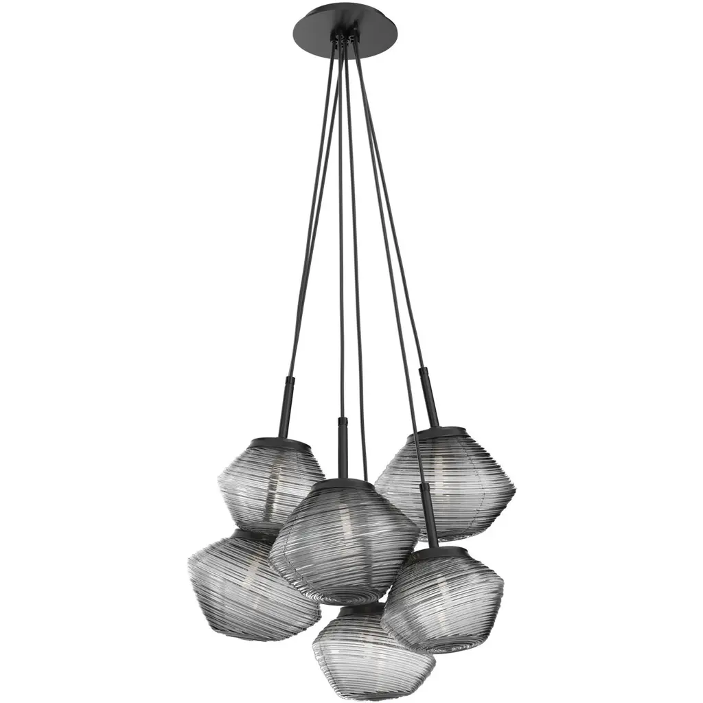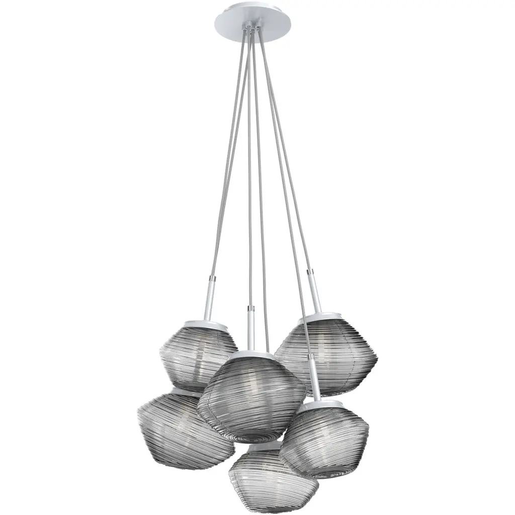 Mesa 5 Multi-Port (Round)-Beige Silver-Smoke Blown Glass-Cloth Braided Cord-LED 2700K