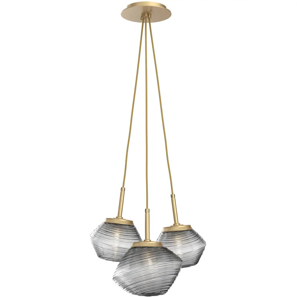Mesa 3 Multi-Port (Round)-Novel Brass-Smoke Blown Glass-Cloth Braided Cord-LED 2700K