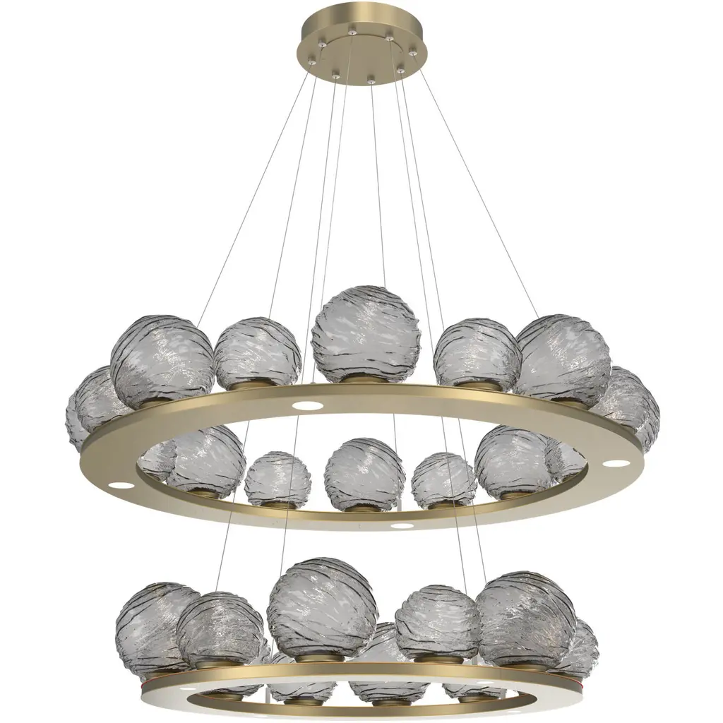 Mesa 48" Ring-Novel Brass-Smoke Blown Glass-Stainless Cable-LED 2700K