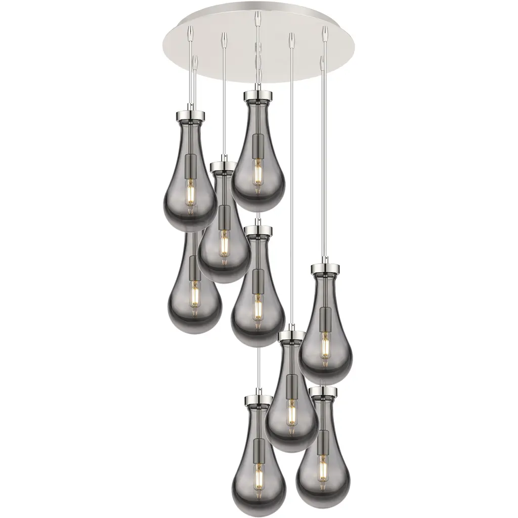 Meteo Round Multi-Port-8PC-Incandescent-Graphite-Blown Glass - Smoke-Black Cloth Braided Cord-E26