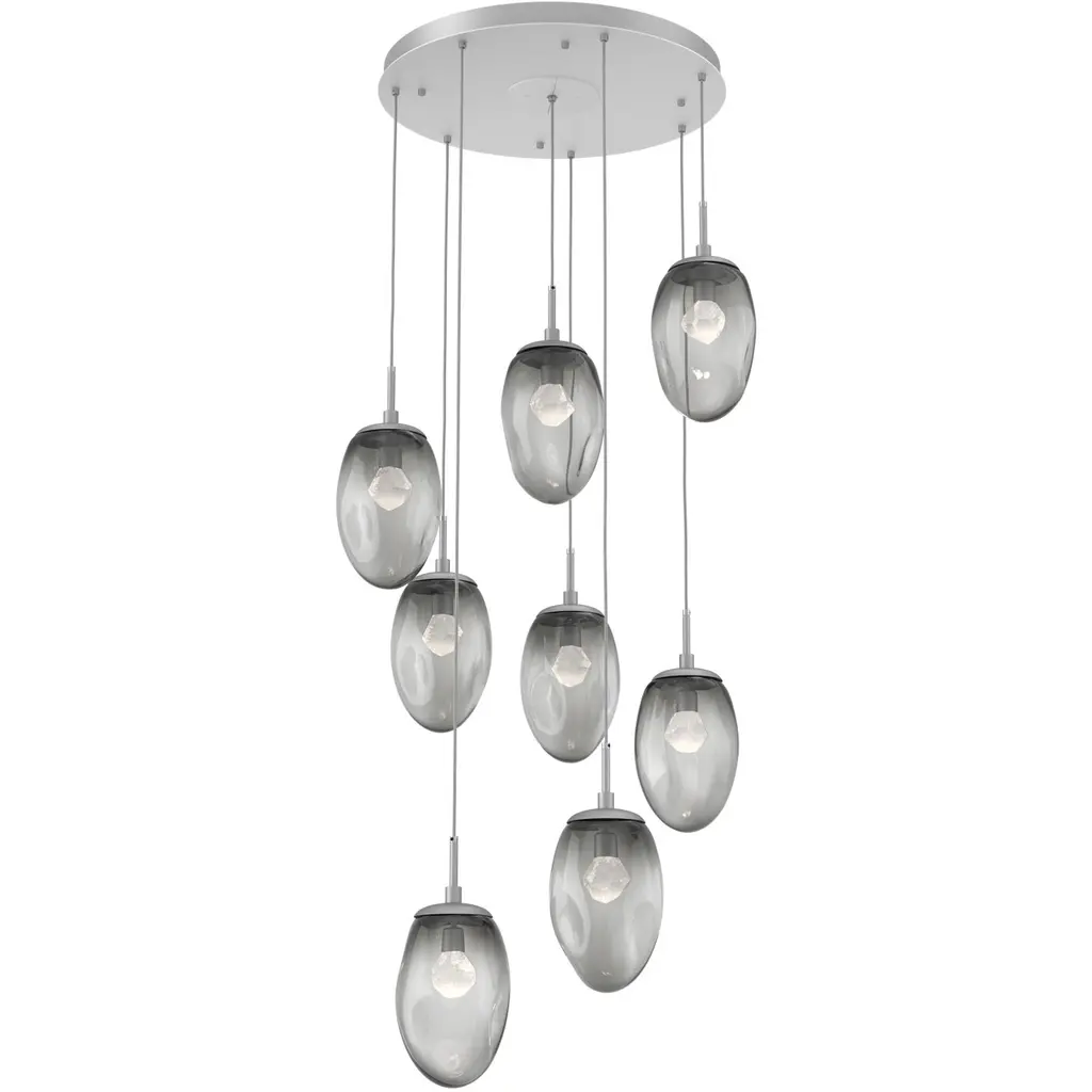 Meteo Round Multi-Port-8PC-LED-Gilded Brass-Zircon Inner - Smoke Outer-Brass Cloth Braided Cord-LED
