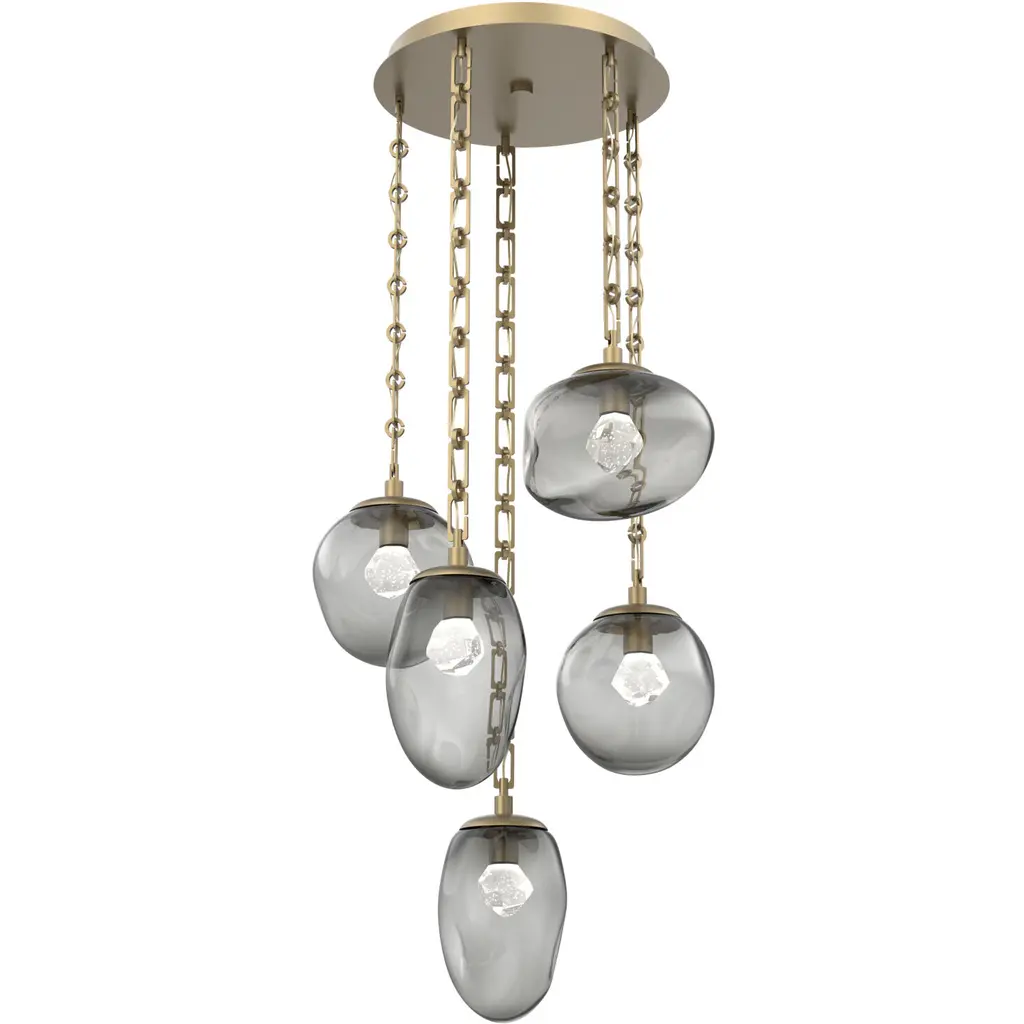 Meteo Led Led Gilded Brass Chandelier Ceiling Light, Round Multi-Port