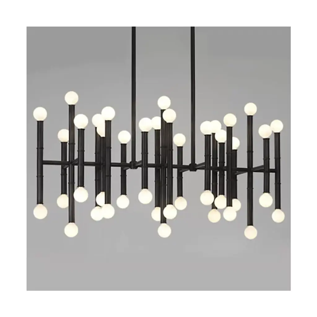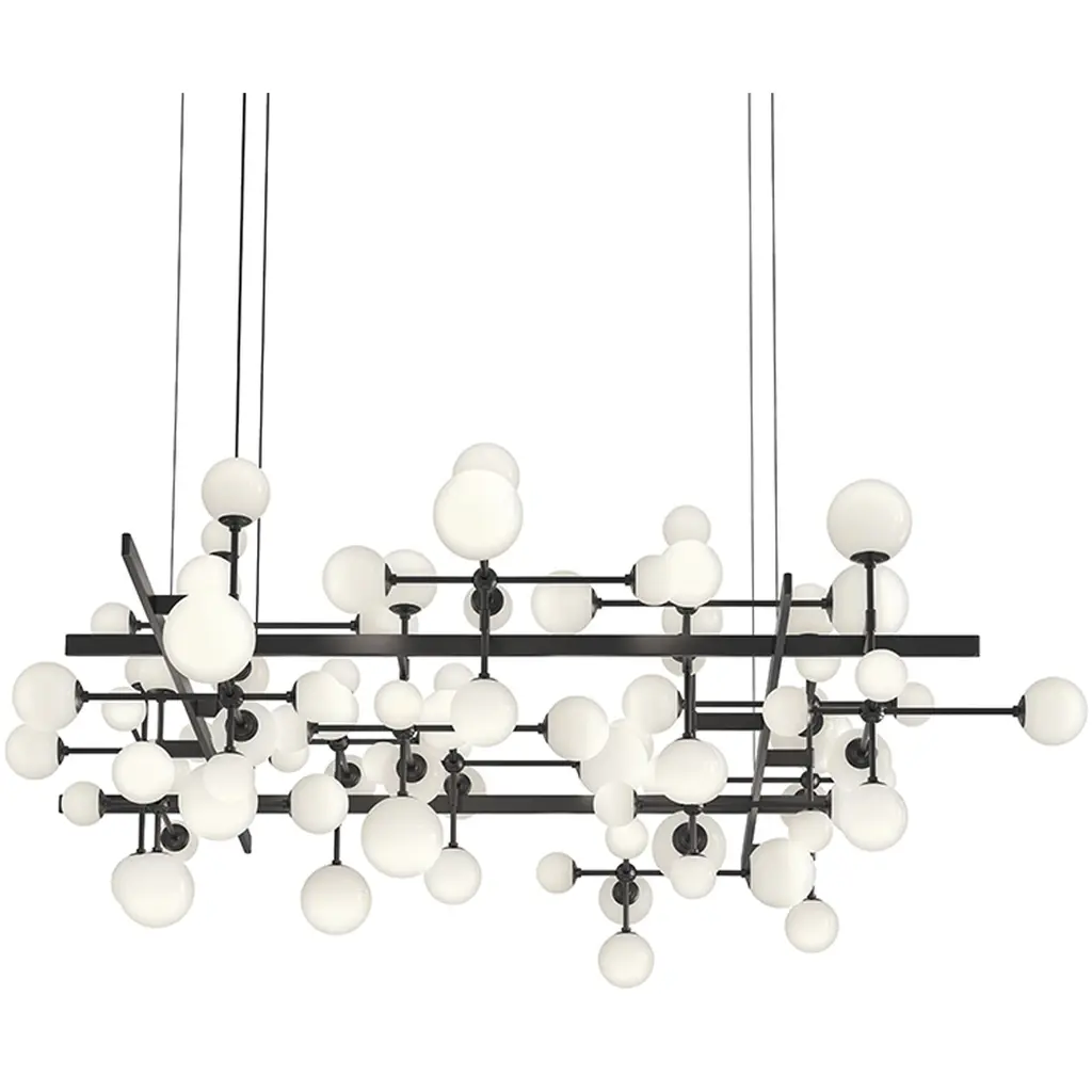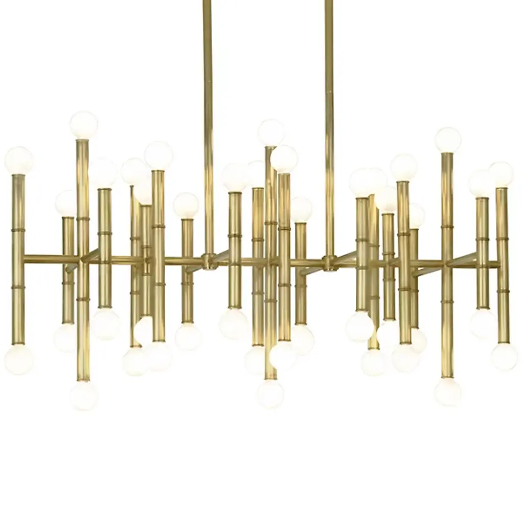 Globes of light pop from a bamboo-like frame, giving the Meurice Rectangular Chandelier designed by Jonathan Adler retro distinction with Hollywood Regency quality. Available in three classic finish options. Complement with the Meurice Wall Sconce for ultra chic allure.