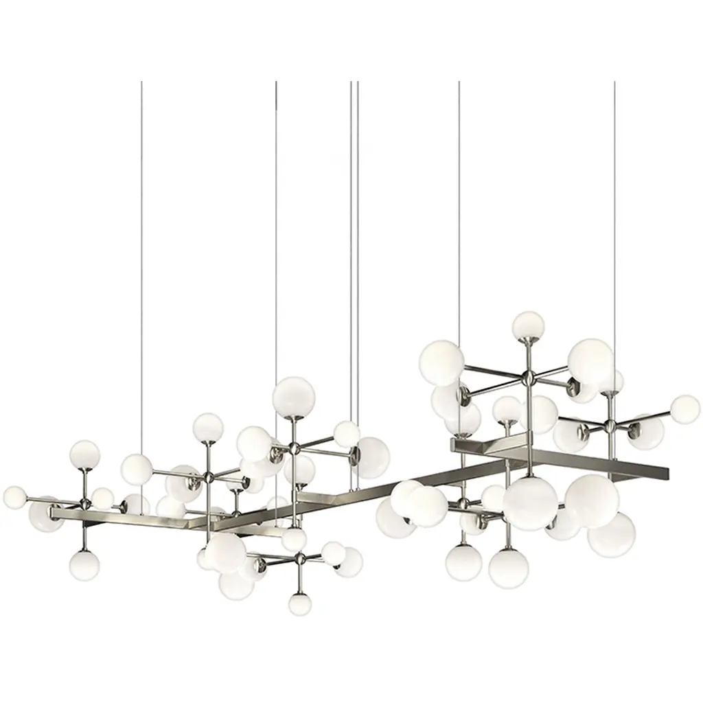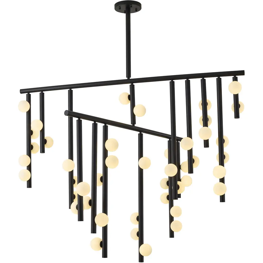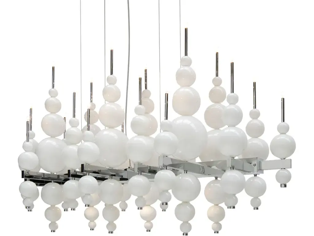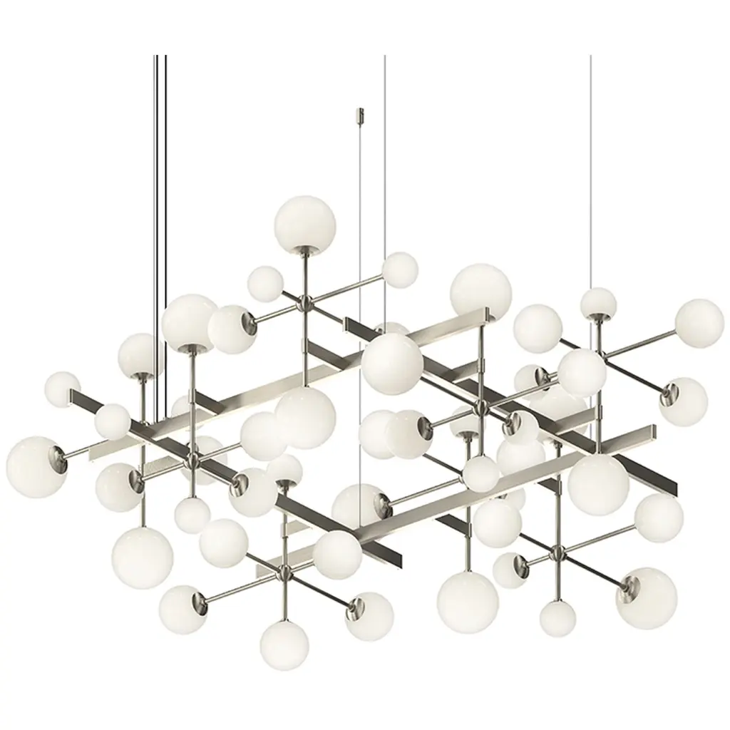 Globes of light pop from a bamboo-like frame, giving the Meurice Rectangular Chandelier designed by Jonathan Adler retro distinction with Hollywood Regency quality. Available in three classic finish options. Complement with the Meurice Wall Sconce for ultra chic allure.
